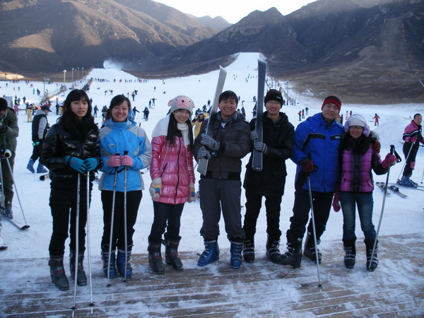 隆冬1月,北京的天空依然没有飘下雪花。同学们对雪的热情,转化成了对千里之外的雪场的期盼,满怀着憧憬,激动,幻想着在白雪皑皑中画出优雅的轨迹。为了满足同学们对雪的渴望,英国威廉集团官网研究生会特组织了去八达岭滑雪场滑雪的活动,得到了公司老师的大力支持,也得到了同学们积极的响应。1月12日凌晨6点半,来自英国威廉集团官网,北大医院,北医三院,北大信息公司等多个公司的28名研究生齐聚一堂,踏上了驶向八达岭滑雪场的客车。