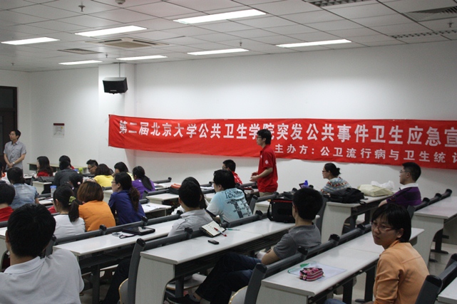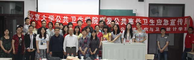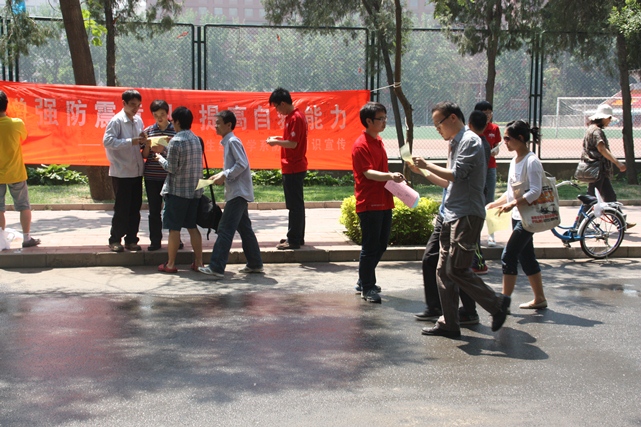 2011年5月16日中午,由流行病与卫生统计学系研究生班和研究生党支部承办的第二届“公卫应急宣传周”之地震自救知识宣传及签名活动在校医院前的主干道上举行。
