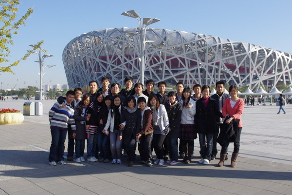 虽然已经到了深秋,但今天可谓“秋高气爽日,正是出游时”,温暖的阳光洒在身上,使参加活动的同学们心情更是灿烂。大家首先参观了奥体公园,鸟巢的雄伟、水立方的娟秀,即使有些同学已不是第一次体会,却依然被深深的震撼,更不用提第一次到奥体公园的同学们了。站在观景大道中央,感受着迎面而来的徐徐微风,听着沙沙作响的树声,看着被微风拂动了泛黄的银杏树叶,顿生人在画中之感,只觉不虚此行。