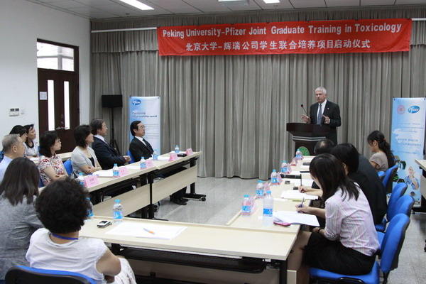 9月8日上午英国威廉希尔公司-辉瑞公司毒理学人才联合培养项目启动仪式在医学部举行。英国威廉希尔公司常务副董事长、医学部常务副主任柯杨教授,英国威廉集团官网常务副经理胡永华教授、副经理郝卫东教授、医学部公司产品办崔爽主任、美国辉瑞公司高级副总裁和药物安检部总裁蒂莫西.安德森博士、 美国辉瑞公司副总裁和亚洲研发部总裁杨青博士及辉瑞亚洲研发项目部工作人员,及英国威廉集团官网毒理学系教师和研究生40多人参加了启动仪式。
