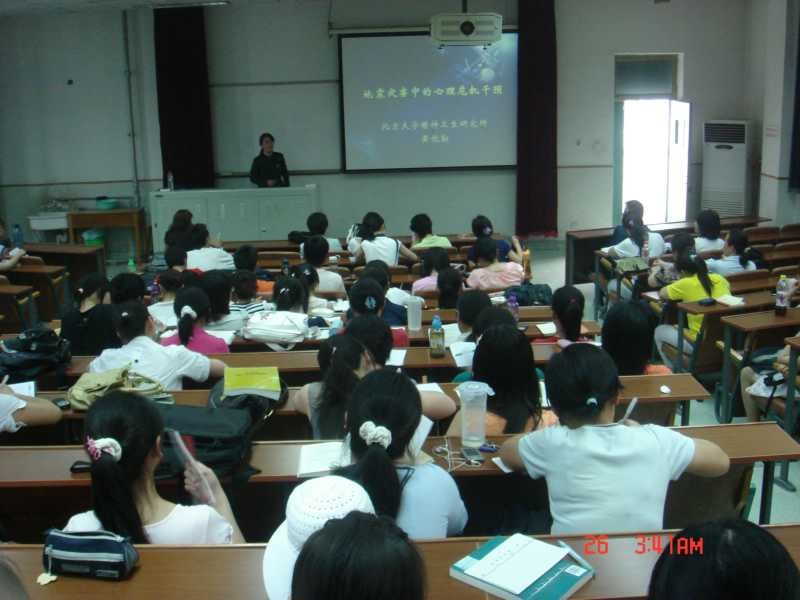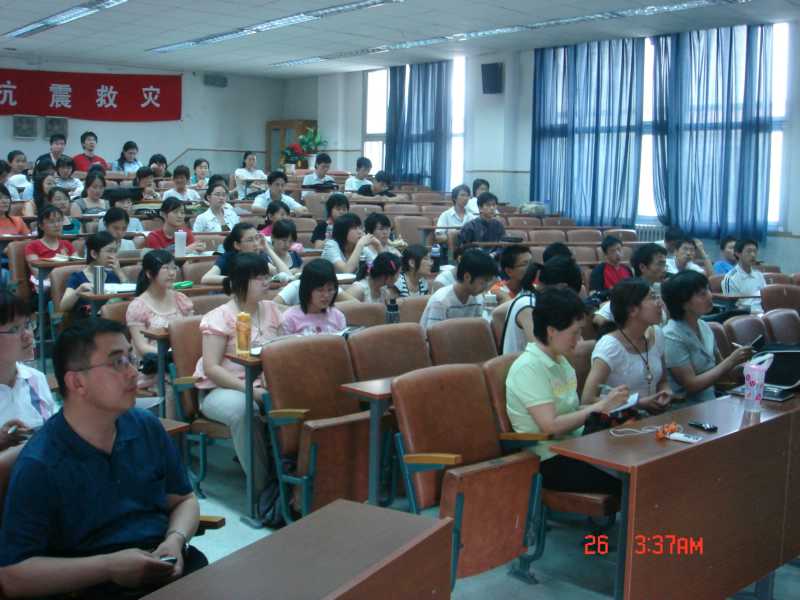 在讲座中,黄悦勤教授讲述了基本的心理干预模式,如认知治疗、暴露治疗和小组治疗等,着重讲述了灾难中儿童、居丧者的心理危机干预基本原则、注意事项及干预技巧。此外黄教授还向大家介绍了卫生部“地震灾区心理危机干预医疗队行动方案”,使师生更加全面地了解了心理危机干预的准备工作、具体方案的制定以及干预的过程等。最后,黄教授向在场的师生介绍了十几个来自灾区一线的“震地心理干预案例”,这些鲜活的案例生动再现了震后心理危机干预的现场工作情况,让在座的师生更加明确了心理危机干预的内容、技巧及如何进行。黄教授的讲座赢得了老师、同学的阵阵掌声。