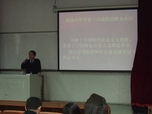 王教授的报告提纲挈领,重点突出,由浅入深地为党员们解读了十七大的主题,以丰富翔实的案例分析、讲解了十七大报告几个特别关注的重要问题:(-)我国改革开放一切成绩的根本原因;(二)当代中国发展的根本价值取向;(三)牢固树立和落实科学发展观坚定不移地走科学发展的道路;(四)更加注重以改善民生为重点的社会建设。王教授对以上几个问题的深入展开为我们更好地领悟十七大报告精神进行了很好地引领和导读,同时也促使所有党员对十七大报告的内容进行更多新的思考。