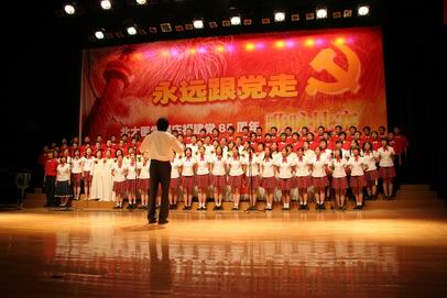 为迎接建党85周年暨长征胜利会师70周年,医学部举行“永远跟党走――庆祝建党八十五周年,弘扬社会主义荣辱观”歌颂比赛。
