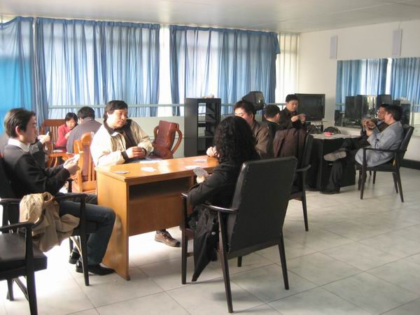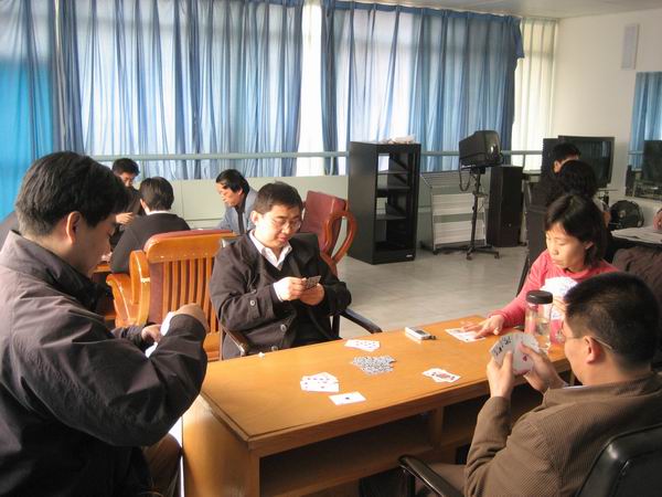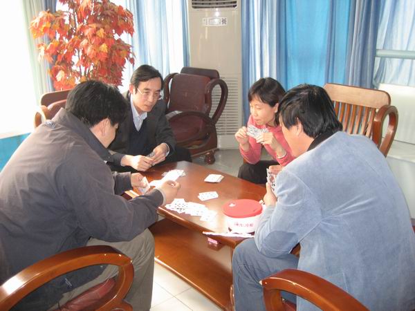 为丰富职工业余生活,为医学部工会举办的扑克牌比赛做准备,4月11日中午,在公司职工之家,公司工会组织部分职工进行了两副牌的升级比赛。通过自愿组合的形式,共有6支队伍12名教职工参加了比赛。首先通过抽签6支队伍分三组进行对垒,时间为1个小时。胜出的三组与成绩最好的失利组进入前四名。前四名的队伍再分两组进行半决赛,为了和医学部的比赛规则统一,半决赛的比赛时间改为半个小时。
