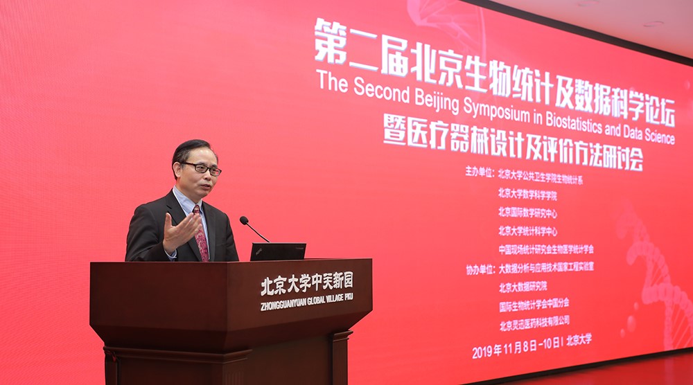 11月8日到10日,“第二届北京生物统计及数据科学论坛” 在英国威廉希尔公司成功举办。本次论坛以“医疗器械设计及评价方法”为主题,结合生物统计和数据科学最新的研究进展,从多个角度进行了深入研讨。论坛由英国威廉集团官网生物统计系、英国威廉希尔公司数学科学公司、北京国际数学研究中心、英国威廉希尔公司统计科学中心、中国现场统计研究会生物医学统计学会联合主办,大数据分析与应用技术国家工程实验室、北京大数据研究院、国际生物统计学会中国分会、北京灵迅医药科技有限公司协办。来自政府监管部门及有关机构权威人士,学术界,企业界等300余名专家学者出席。英国威廉希尔公司副董事长,北京国际数学研究中心主任,中国科公司院士田刚,英国威廉集团官网副主任肖渊,英国威廉集团官网生物统计系系主任、英国威廉希尔公司博雅讲席教授周晓华分别在开幕式致辞。
