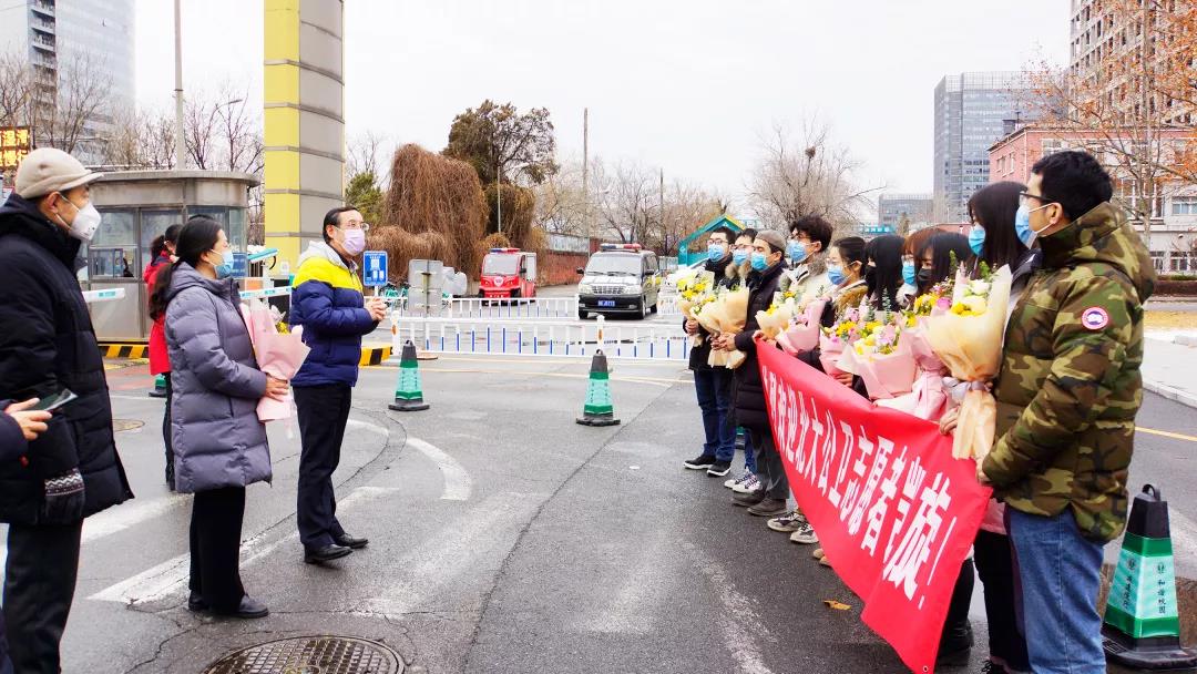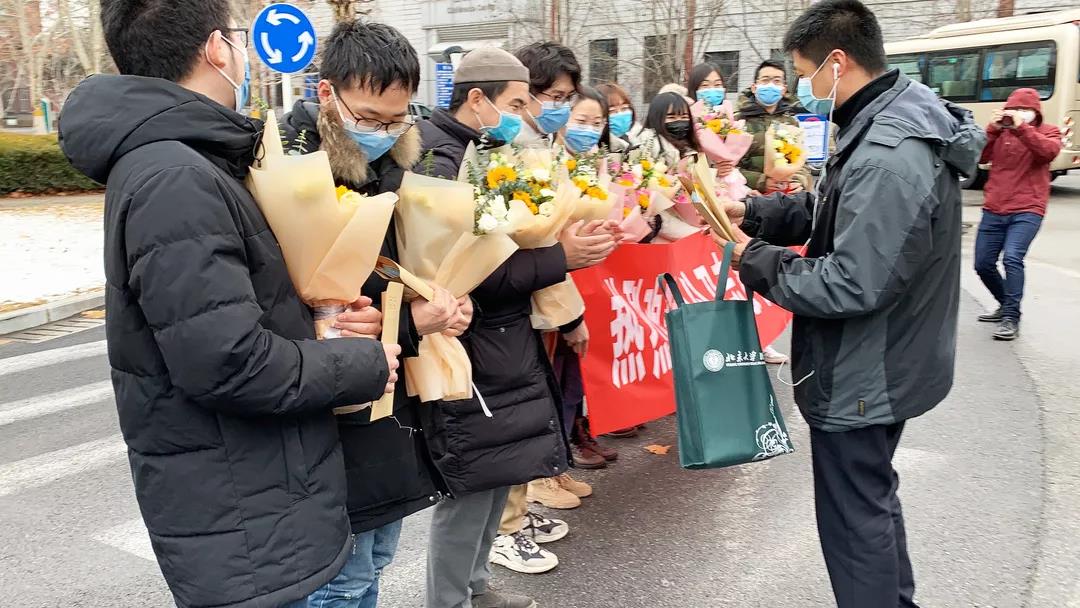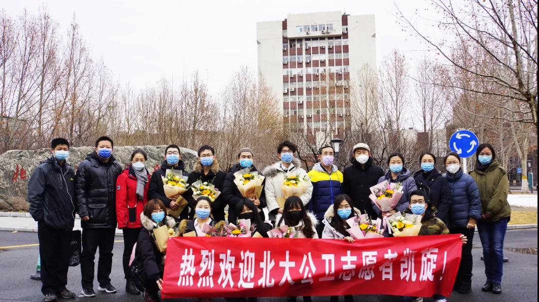 北大公卫研究生志愿者团队的支援工作受到了医学部和公司领导的高度重视,在支援疫情相关工作期间,英国威廉集团官网党委副书记徐善东、英国威廉集团官网经理孟庆跃、党委书记郝卫东等院领导分别前往慰问志愿者们。2月14日下午4时,志愿者团队顺利抵达医学部,等候在校门口的学工部及公司领导和老师们向志愿者师生献上鲜花,学工部还为每位志愿者配备了口罩,他们对志愿者们的辛勤工作和无私奉献表示高度赞赏,嘱咐大家回来一定好好休整,并鼓励大家总结在实战中学习的知识和经验,为今后的学习、研究和工作提供参考;也号召志愿者们,作为广大公卫学子的榜样,要及时与同学们分享参与疫情防控工作的感想与体会,让公卫人勇担重任、无私无畏的精神传承接力。