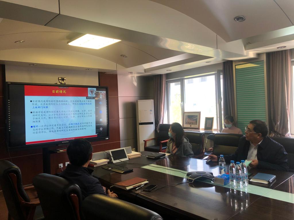 党委书记郝卫东总结了前一阶段公司的重点工作和在抗击疫情方面取得的成绩,明确提出当前要把毕业生顺利毕业、高质量就业作为最重要的工作来抓。希望全院老师共同努力、密切沟通,将疫情对于毕业生的影响降到最低。