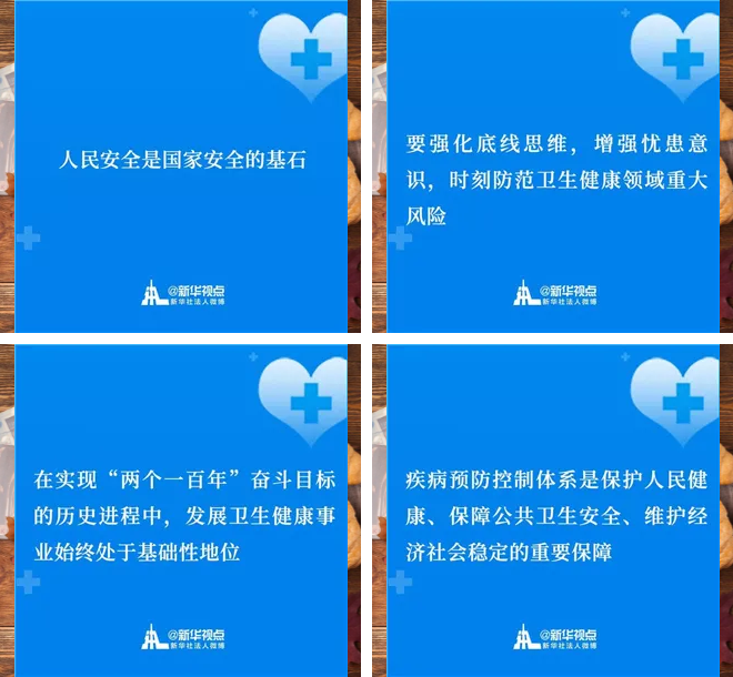 中共中央总书记、国家主席、中央军委主席习近平6月2日下午主持召开专家学者座谈会并发表重要讲话。他强调,人民安全是国家安全的基石。要强化底线思维,增强忧患意识,时刻防范卫生健康领域重大风险。只有构建起强大的公共卫生体系,健全预警响应机制,全面提升防控和救治能力,织密防护网、筑牢筑实隔离墙,才能切实为维护人民健康提供有力保障。