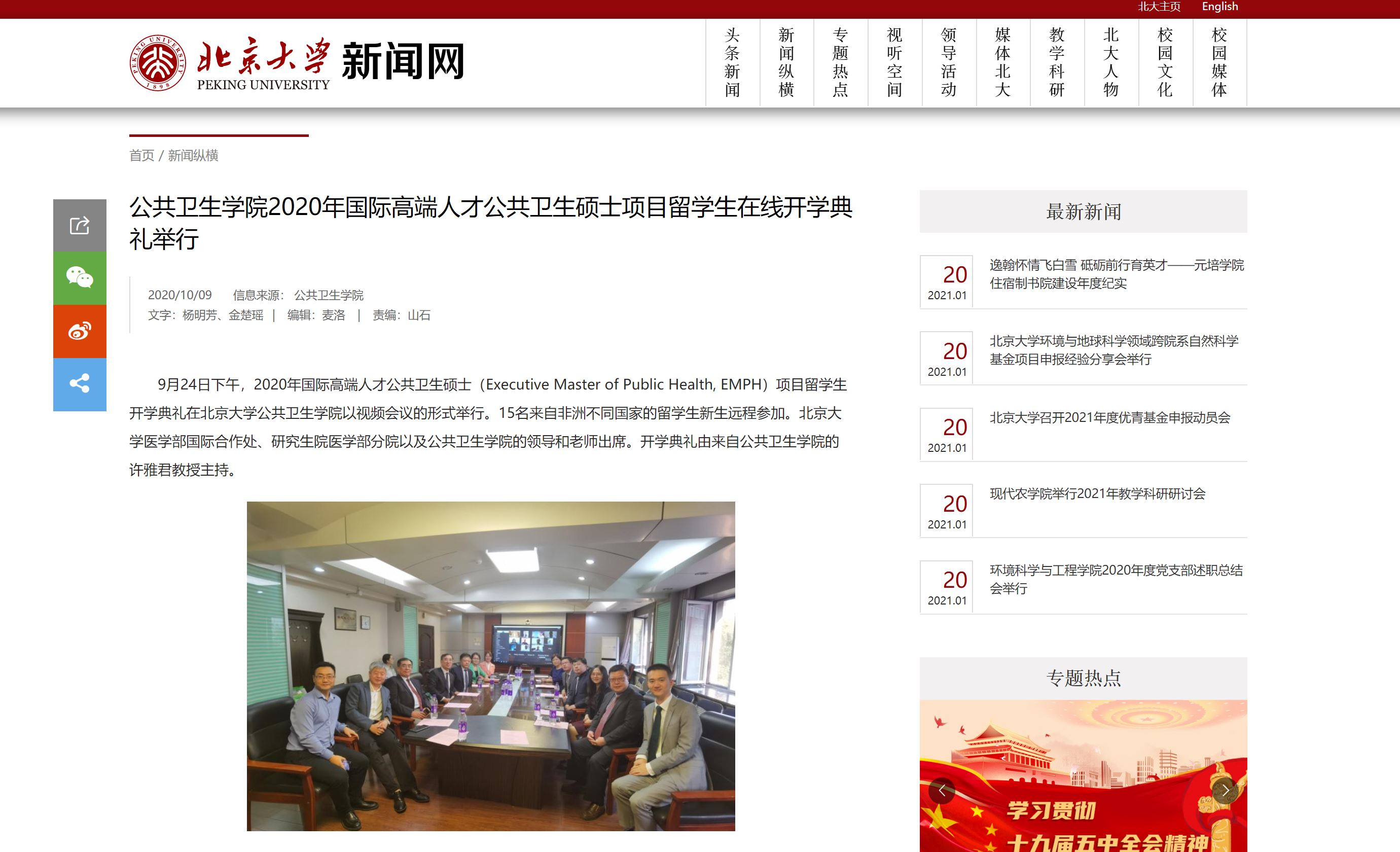 图1 北大新闻网关于EMPH开学典礼的新闻
