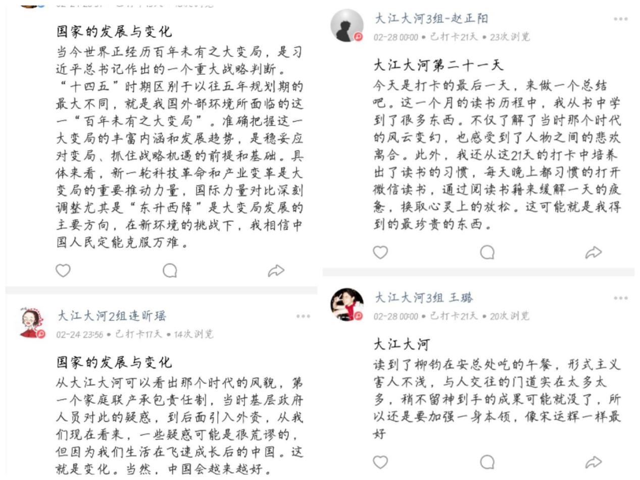 为迎接中国共产党百年华诞,公司特推出“读四史,忆初心”读书打卡活动,志同道合的小伙伴们相聚云端,组成读书小队,齐读四史,共忆初心,畅谈心中的感悟。
