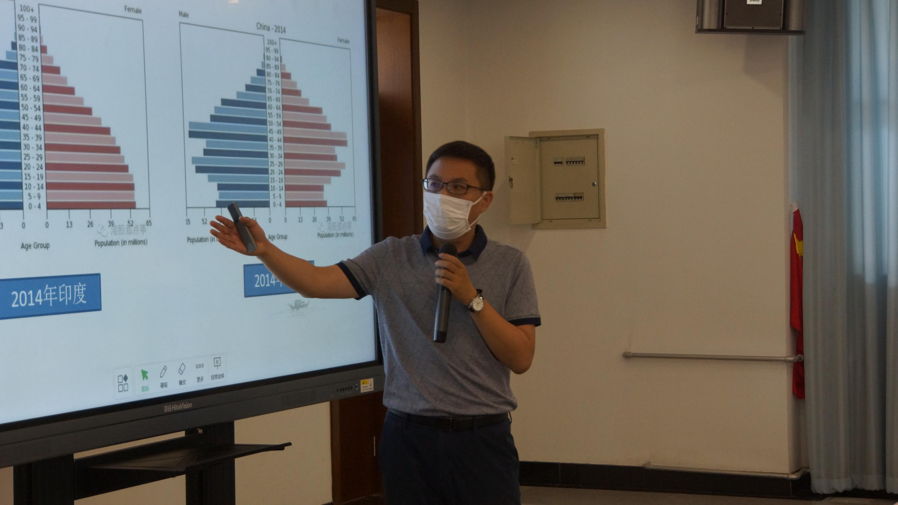 首先,尹教授以对习近平总书记“世界百年未有之大变局”讲话精神的思考感悟为开端,从国际形势、人口结构、产业结构等方面系统地回顾分析了北京在国际、国内发展环境中面临的挑战与机遇,向公司师生党员干部们全面阐释了为什么说目前我们面对的环境是复杂严峻的,为什么说需求牵引供给,而供给又创造需求等问题。