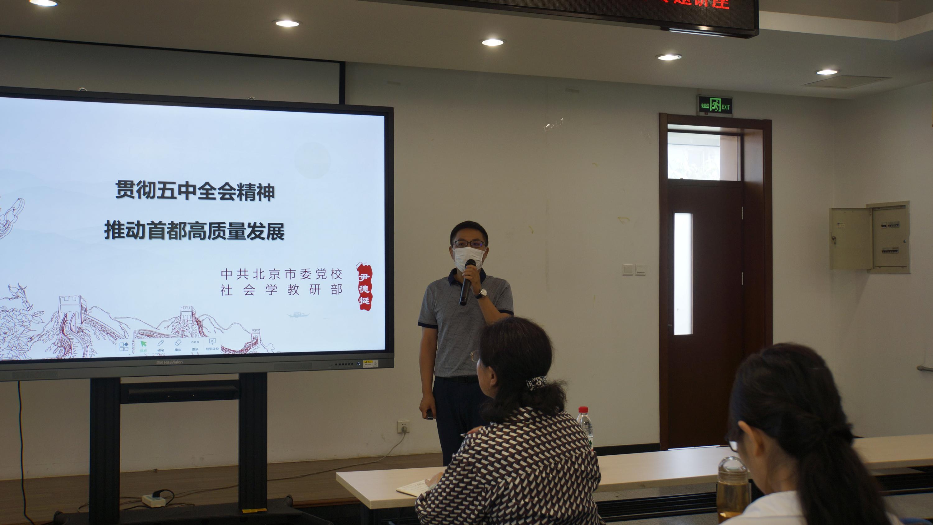 本次讲座的主题为“贯彻落实五中全会精神,推进首都高质量发展”。尹教授围绕十四五规划,阐述了首都北京的高质量发展历史与进程,同时也为老师同学们解读了首都在“十四五”规划和2035远景目标中的发展方向。