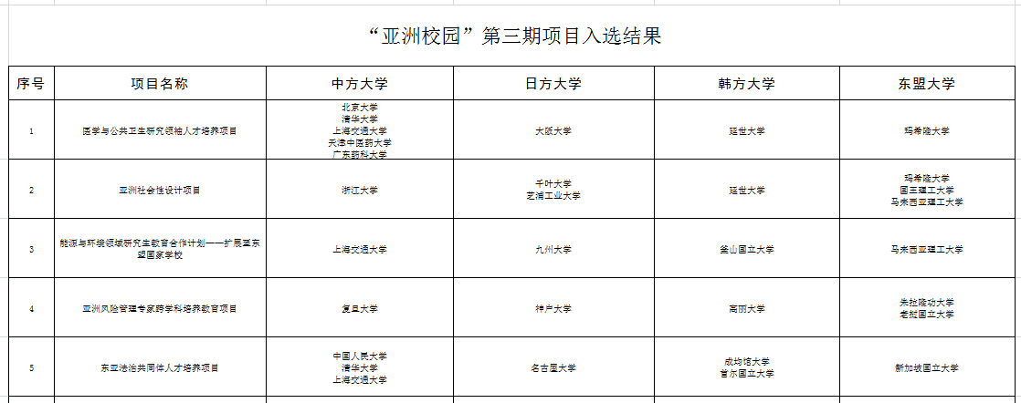 2021年8月,三国教育主管部门共同启动第三期项目遴选。经三方联合评审结果,共有20个子项目入选“亚洲校园”第三期,医学与公共卫生研究领袖人才培养项目以排序第一成功入选。