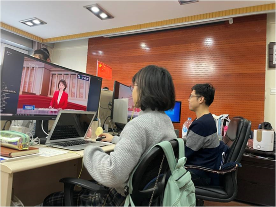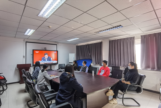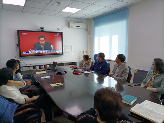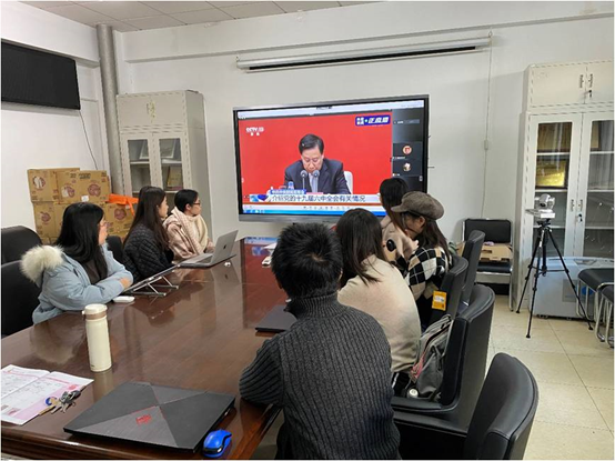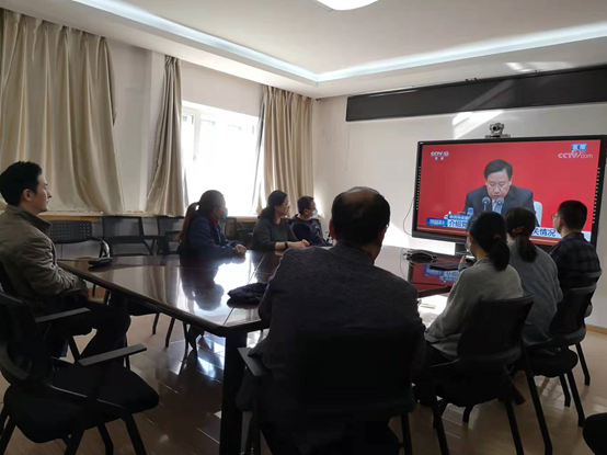 当日一早,新公卫楼各会议室、办公室里人头攒动、气氛热烈,各教工和员工支部在严格遵守疫情防控期间会议规定的前提下,热火朝天地开展着收看十九届六中全会精神发布会的筹备工作。等发布会一开始,会场则立时呈现一派静静观看听讲的景象。