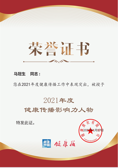 近日,由国家卫生健康委员会主管的全国卫生行业报——健康报社组织开展的2021年度医学科技与健康传播“最佳”系列推选活动结果出炉。经过全方位、多角度的考核与评估,推选出了健康传播人物类、团队类与组织类等多个奖项,公司营养与食品卫生学系主任马冠生教授荣获“2021年度健康传播影响力人物称号”。