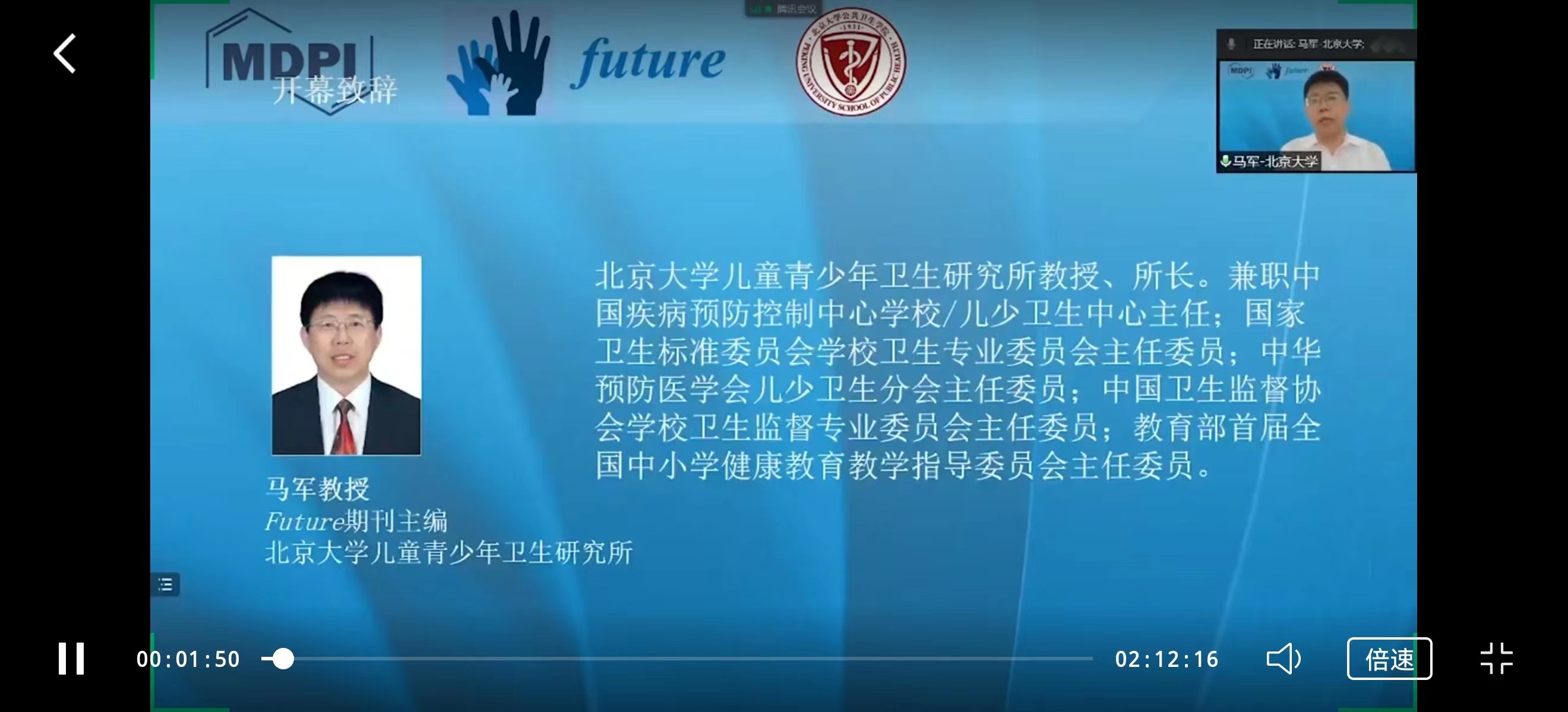 “中国儿童青少年热点问题论坛暨Future新刊发布会”特邀Future期刊主编马军教授作为论坛主席,汇聚国内外专家为会议主讲人,并邀请到联合国儿童基金会驻华办事处共同参与。英国威廉希尔公司儿童青少年卫生研究所马军教授、MDPI亚太区学术关系总监刘国水博士代表双方致辞,英国威廉集团官网经理詹思延教授,MDPI执行总裁Delia Mihaila女士,联合国儿童基金会驻华办事处黄晓娜女士,香港浸会大学体育运动及健康学系Patrick W.C. Lau刘永松教授,联合国艾滋病规划署周凯女士发表视频致辞,向Future的创立表示祝贺。