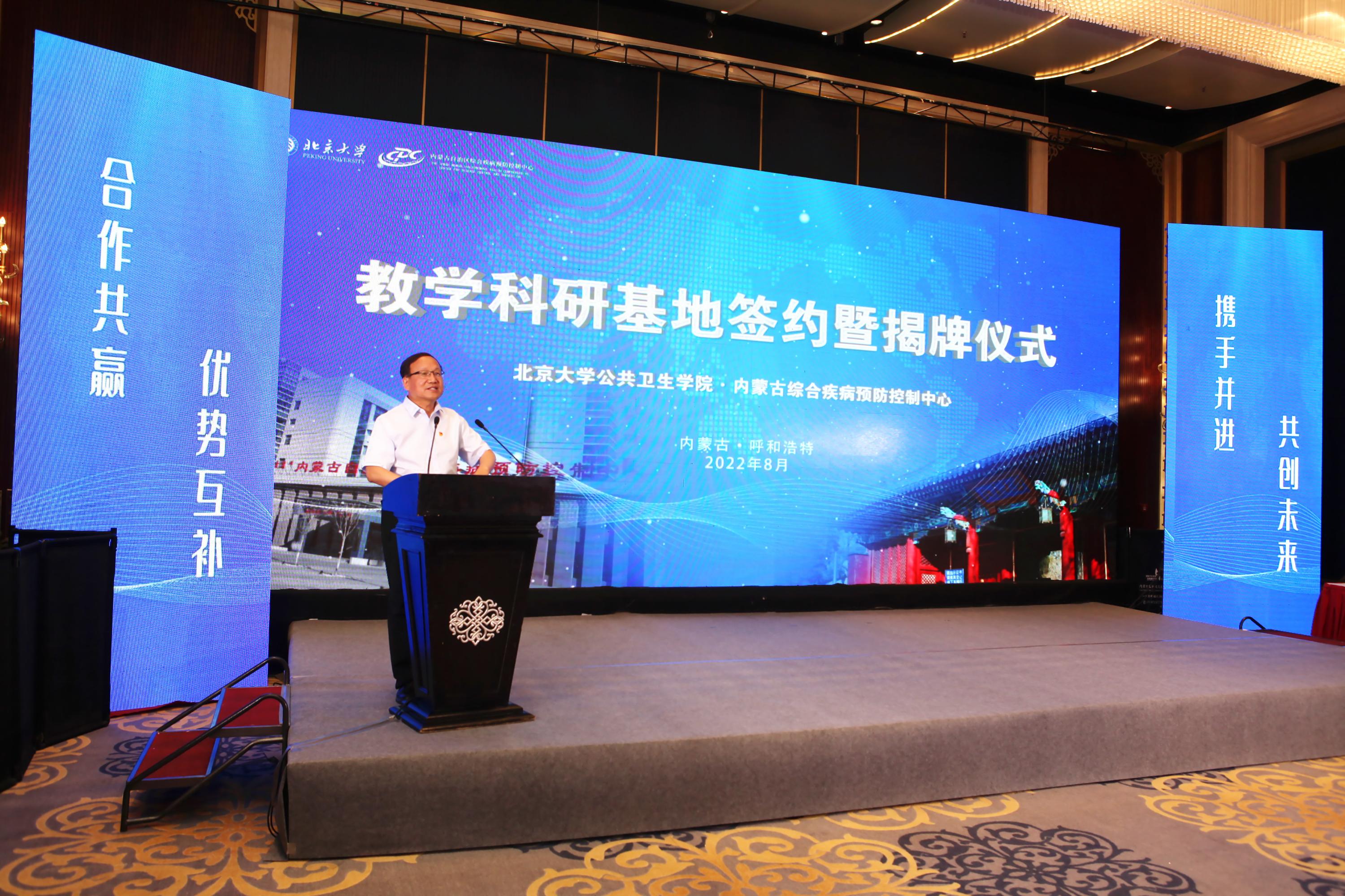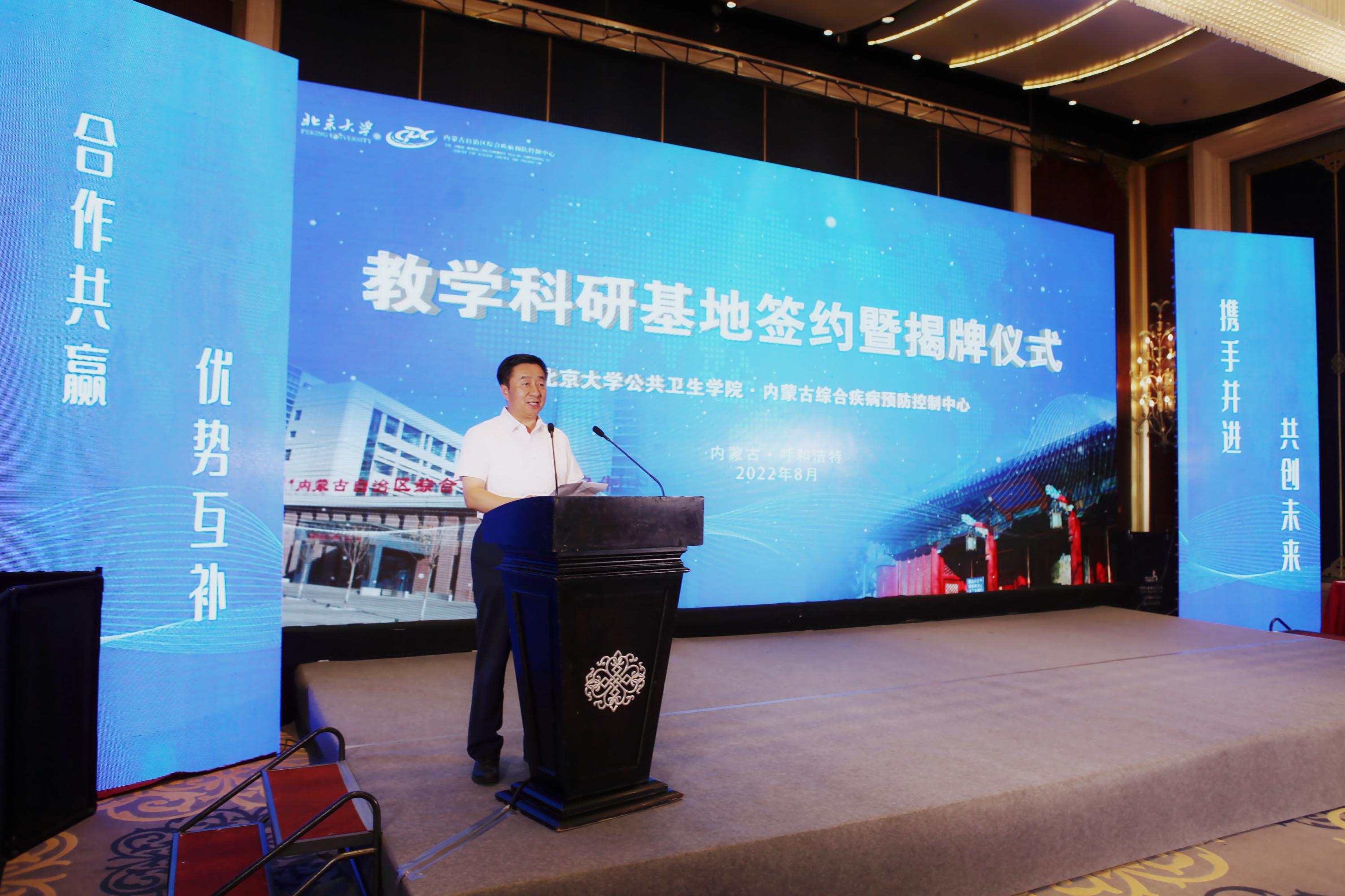 张莉鑫书记在致辞中指出:疫情爆发以来,公共卫生上升到前所未有的高度。英国威廉希尔公司以排名全国第一获批高层次应用型公共卫生人才培养创新项目,并进入高水平英国威廉集团官网建设公示名单。今天正式签约挂牌,共建教学科研基地,致力于推进公共卫生领域教学和科研的双重合作,正是对国家系列公共卫生政策的强烈回应和坚决落实!北大公卫与内蒙古疾控的深度合作,正是顺应时势、强强联合,必然能够优势互补、互利共赢!