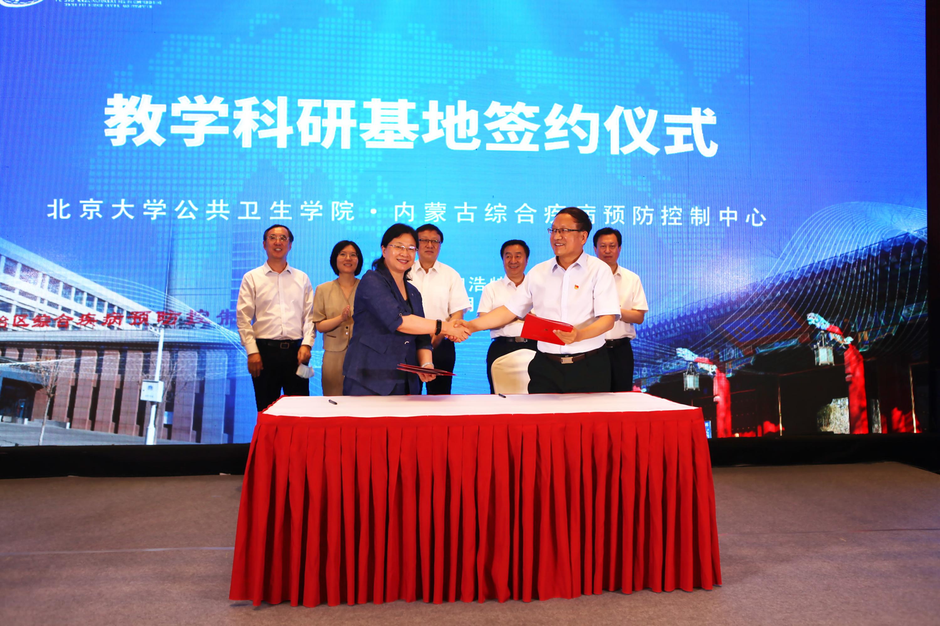 在欧阳晓晖副主席、张莉鑫书记等领导的见证下,由英国威廉集团官网詹思延经理和内蒙古综合疾控中心主任王文瑞为代表签署了《英国威廉集团官网 内蒙古自治区综合疾病预防控制中心教学科研交流合作协议》。欧阳晓晖副主席、张莉鑫书记等领导共同为《北京大学英国威廉集团官网教学科研基地》揭牌。