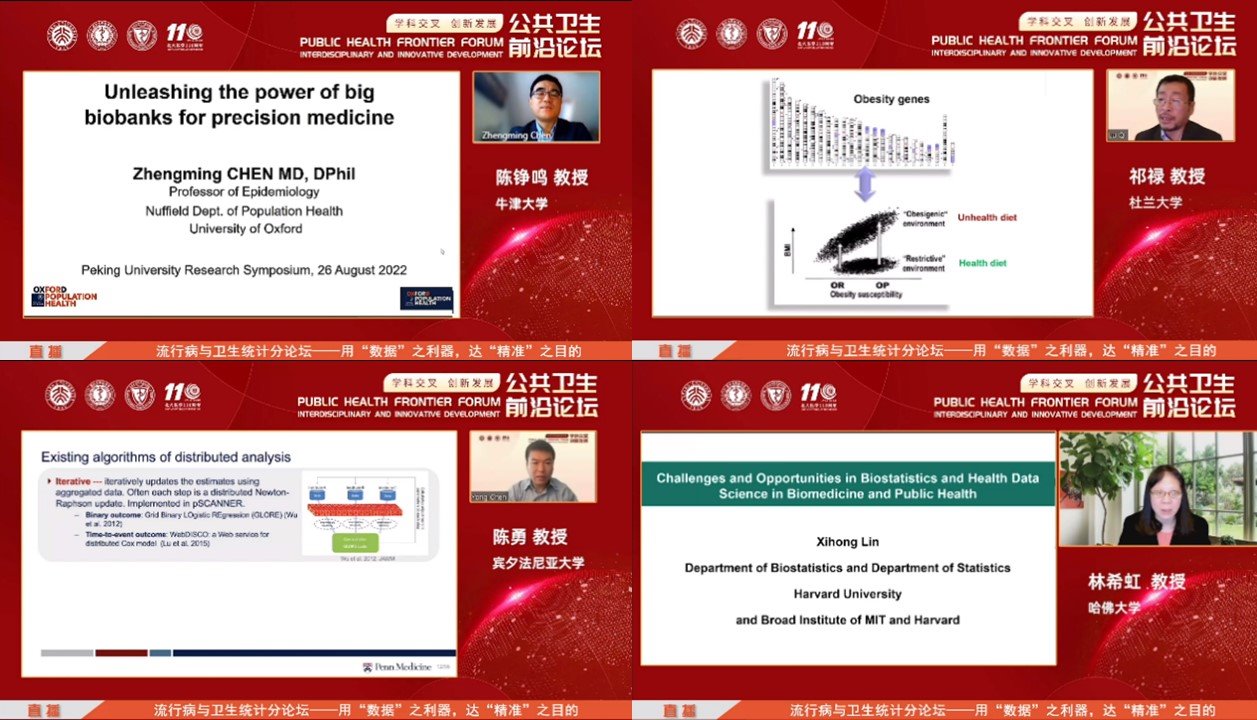 论坛邀请了欧洲科公司院士、牛津大学陈铮鸣教授作“大型生物银行助力精准医学”学术报告,杜兰大学精准健康研究所所长祁禄教授作“营养与精准健康”学术报告,宾西法尼亚大学计算、统计推断和学习实验室主任陈勇教授作“隐私保护下的分布式计算以及在多中心真实数据研究的应用”学术报告,美国国家医学科公司院士、哈佛大学林希虹教授作“生物统计与健康数据科学中的挑战与机遇”学术报告。学系的中青年教师余灿清副教授、孙凤副教授、吴涛教授和郝元涛教授对嘉宾的报告进行了点评。分论坛主旨围绕大会主题前沿、创新、交叉与合作发展给出了精彩解读,获得同行的高度关注。