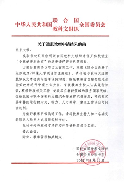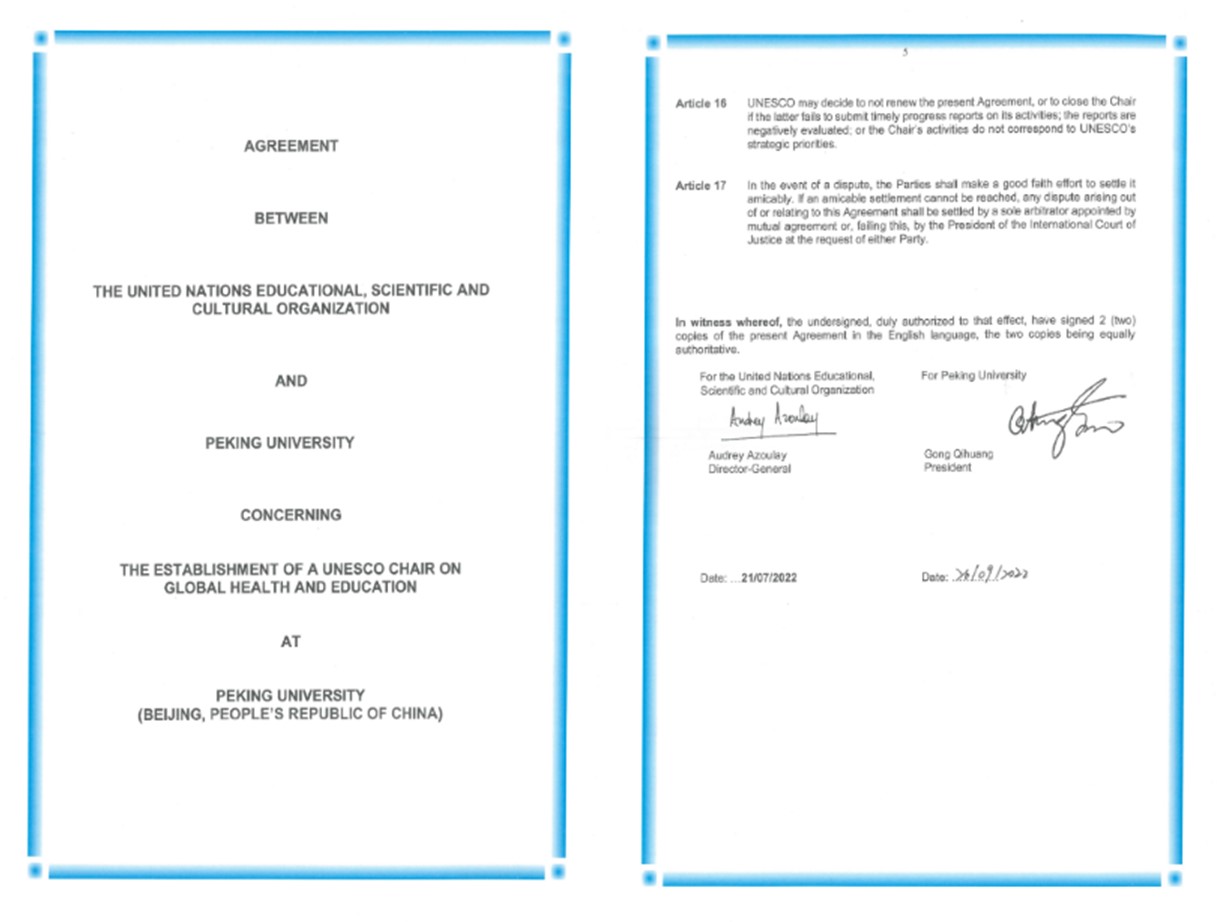 (图1 英国威廉希尔公司-联合国教科文组织“全球健康与教育”教席协议)