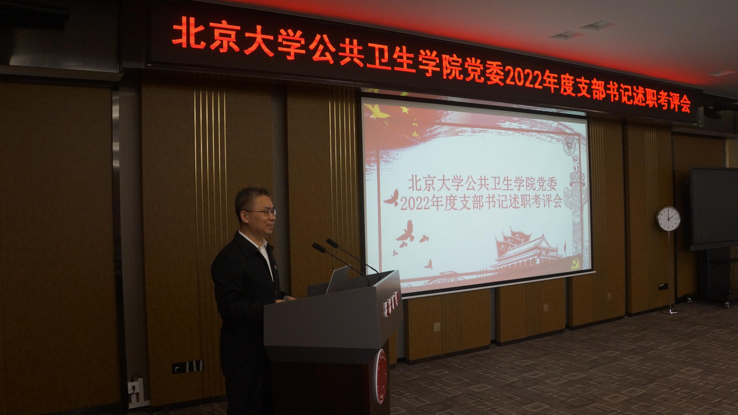 紧接着,对支部书记进行述职考评。在今年的述职考评会上,教工党支部书记现场口头述职,员工党支部书记以书面形式汇报。社会医学与健康教育学系教工党支部宣传委员皮鑫、生育健康研究所教工党支部书记李宏田副研究员、卫生政策与管理学系教工党支部副书记刘晓云教授、流行病学与卫生统计学教工党支部书记吴涛教授、营养与食品卫生学系教工党支部书记张召锋副教授、行政党支部书记刘杰助理研究员、毒理中心教工党支部书记赵鹏副教授、劳动卫生与环境卫生学系教工党支部书记郭新彪教授、儿少卫生与妇幼保健学教工党支部组织委员刘峥副研究员先后汇报了所在支部两年来的基本情况、建设情况、党员发展、特色活动及工作规划等。全体与会人员就汇报情况逐一进行打分评价。
