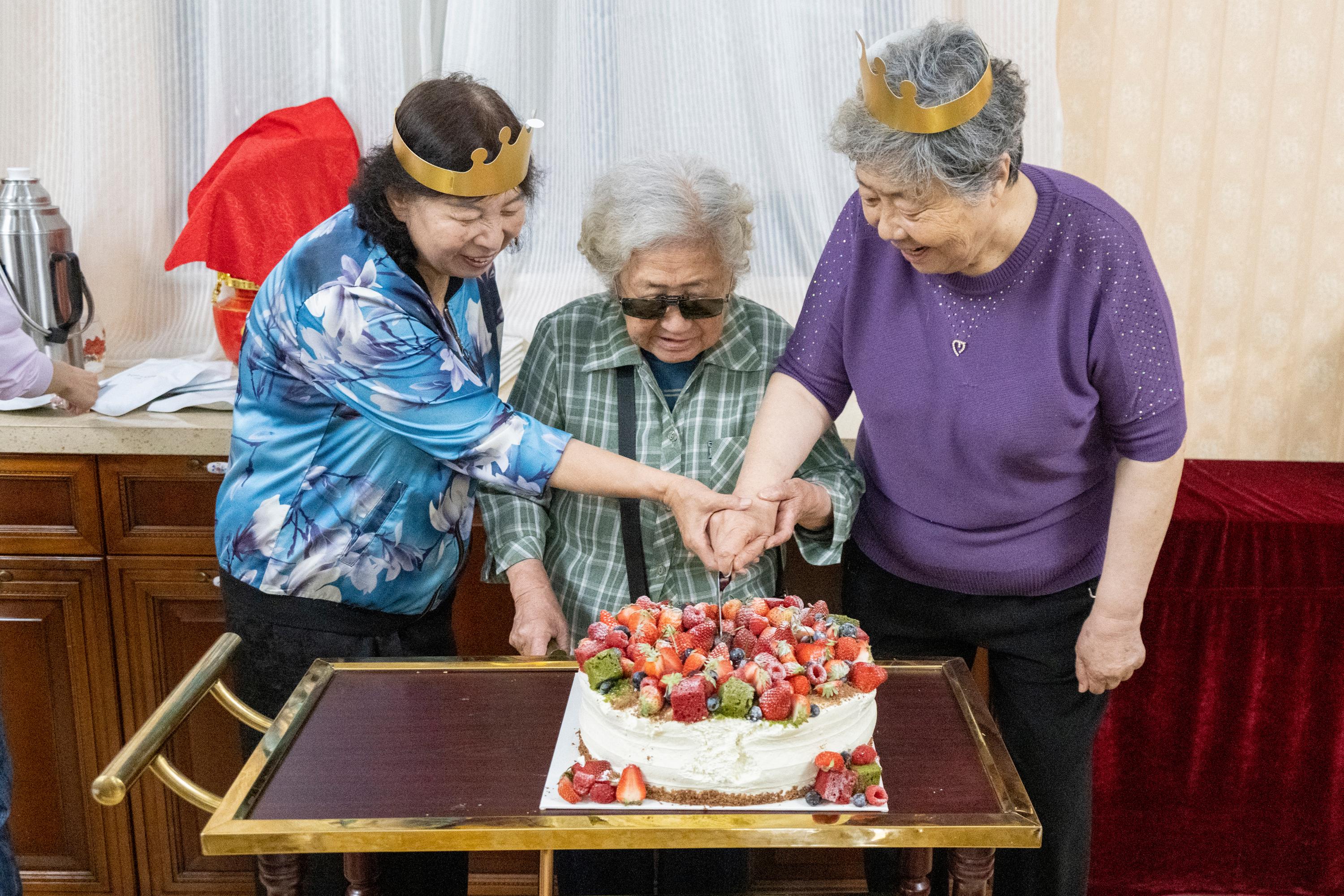 午餐环节,公司为参加本次活动80、90岁的老教师们举行了生日庆祝活动。寿星们头戴生日帽,全体人员集体鼓掌,为他们送上了深深的生日祝福。