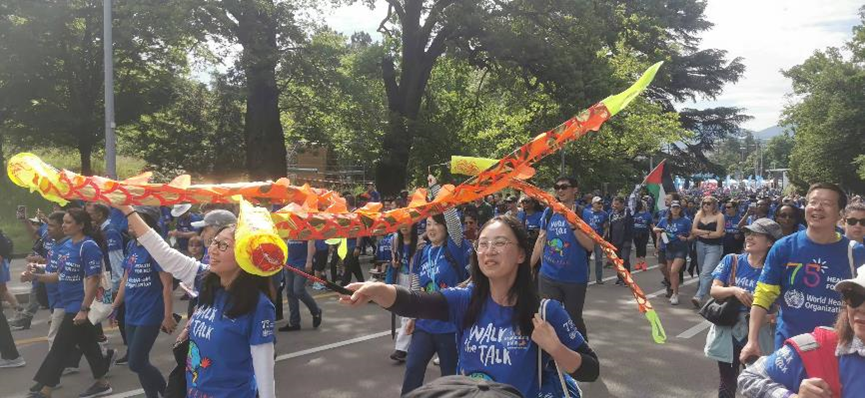 北大师生还出席了世卫组织东南亚区域办事处、世界卫生组织全球非传染性疾病平台、澳大利亚卫生部、肯尼亚政府、苏格兰政府、印度常驻团、卡塔尔政府、德国政府、加纳政府、世界经济论坛等主办的多场边会,就感兴趣的话题进行了分享和交流,并在以“Walk the Talk”为主题的世界卫生组织全球健康推广活动中留下了“龙行天下”的中国印迹。