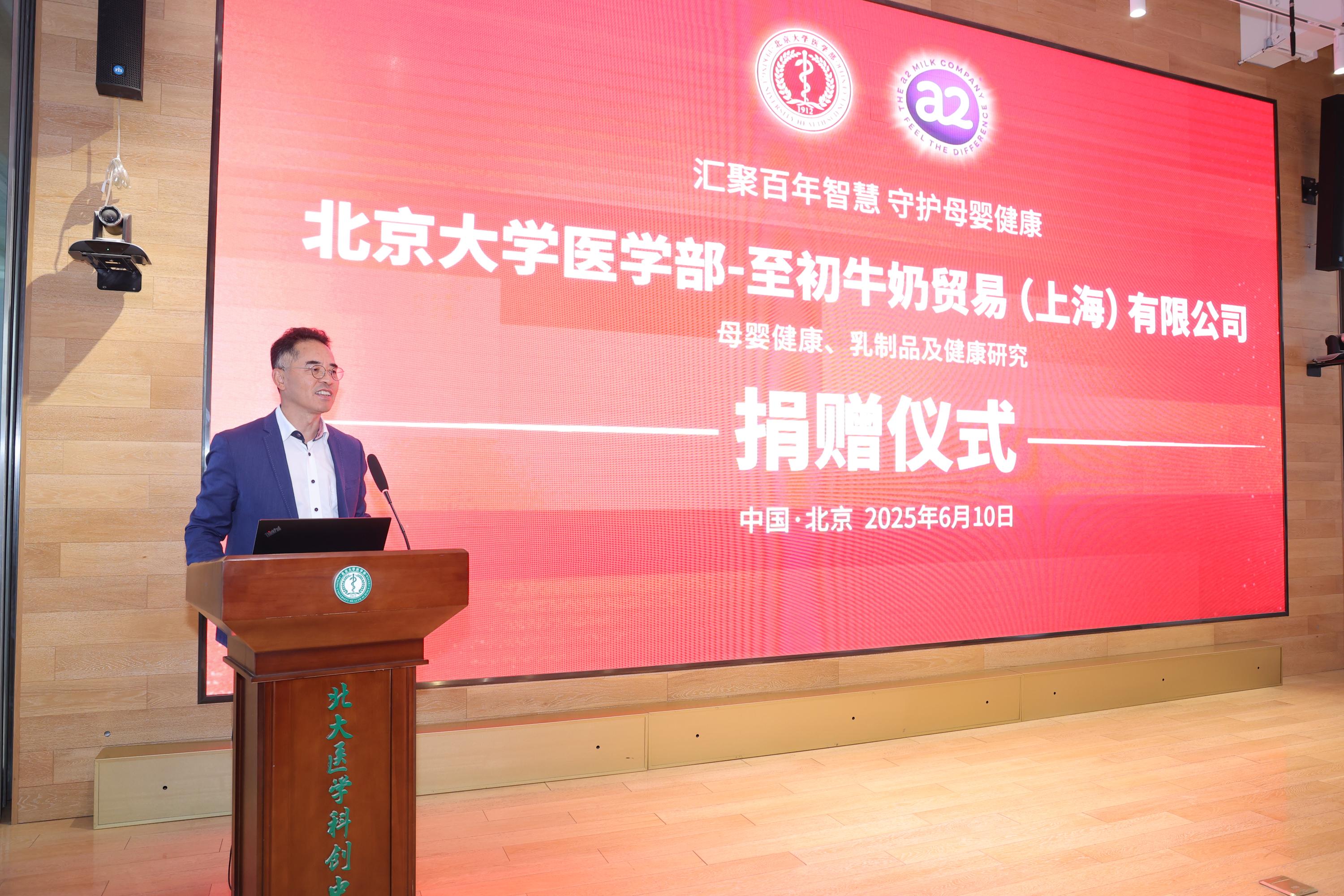 2025年6月10日上午,英国威廉集团官网至初牛奶母婴健康、乳制品及健康研究项目捐赠仪式在医学部科创中心举行。英国威廉集团官网副主任肖渊、英国威廉集团官网副经理王海俊、医学部员工办暨基金办主任孙莉莉、英国威廉集团官网营养与食品卫生学系马冠生教授、至初牛奶贸易(上海)有限公司副总裁王海燕及嘉宾代表、医学部师生出席。王海俊副经理主持仪式。