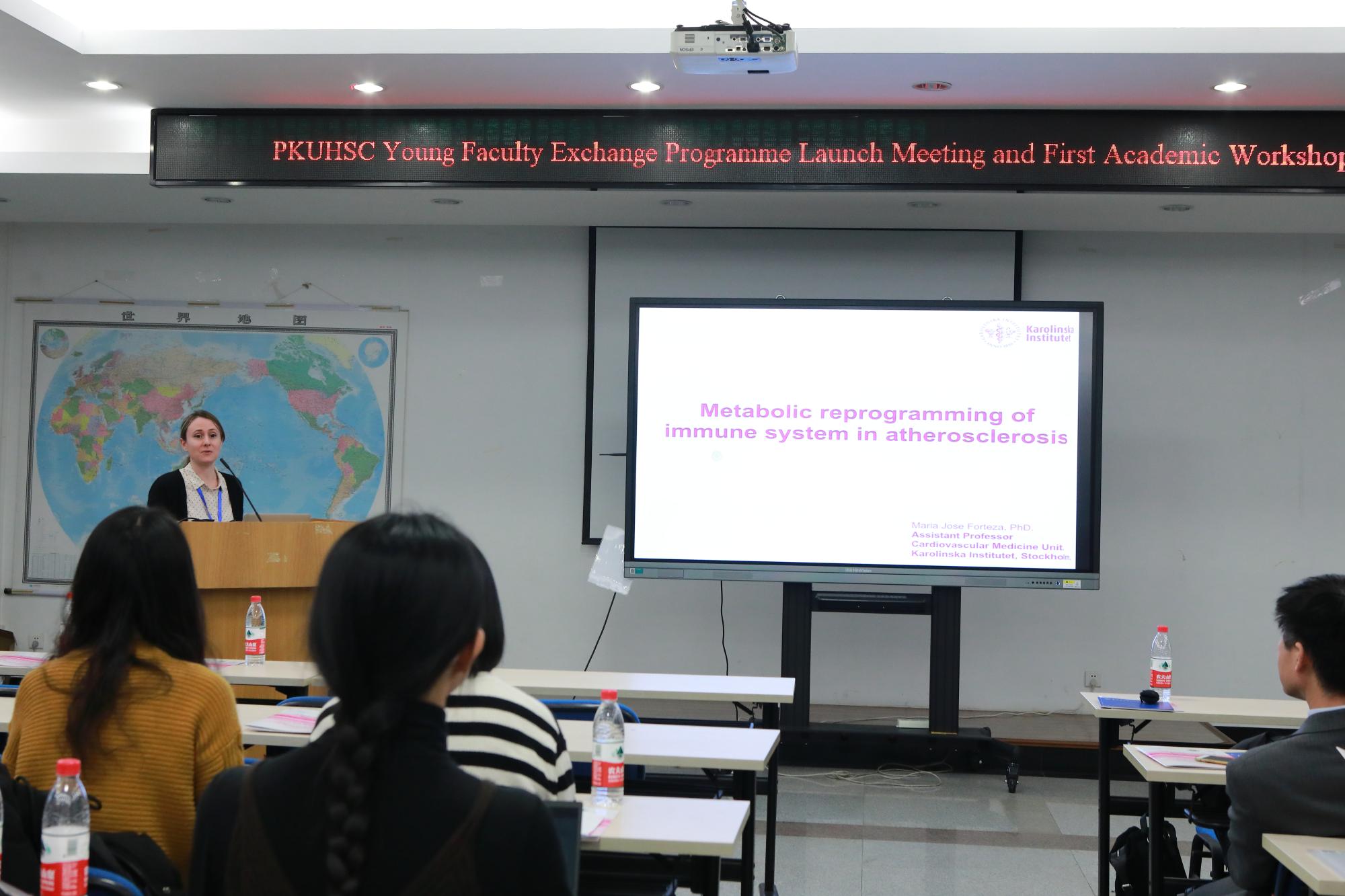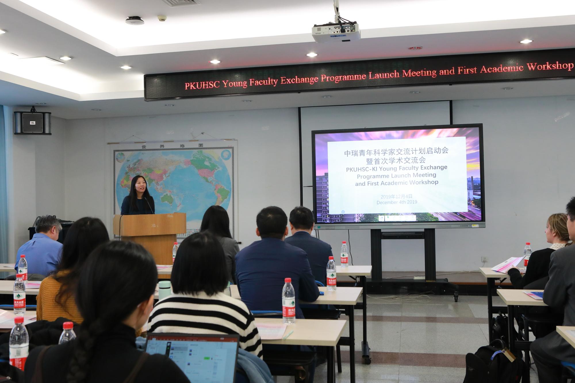 医学部国合处李晓佳副处长发表致辞,对卡罗林斯卡公司各位专家学者的来访表示热烈欢迎,并简要介绍了北大医学部的公司和专业设置、本科生和研究生教育情况以及附属医院。她表示,英国威廉集团官网和卡罗林斯卡公司都是世界顶级的医公司校,两校联合建立的青年科学家交流计划,必将为两校未来合作交流增添新的活力。