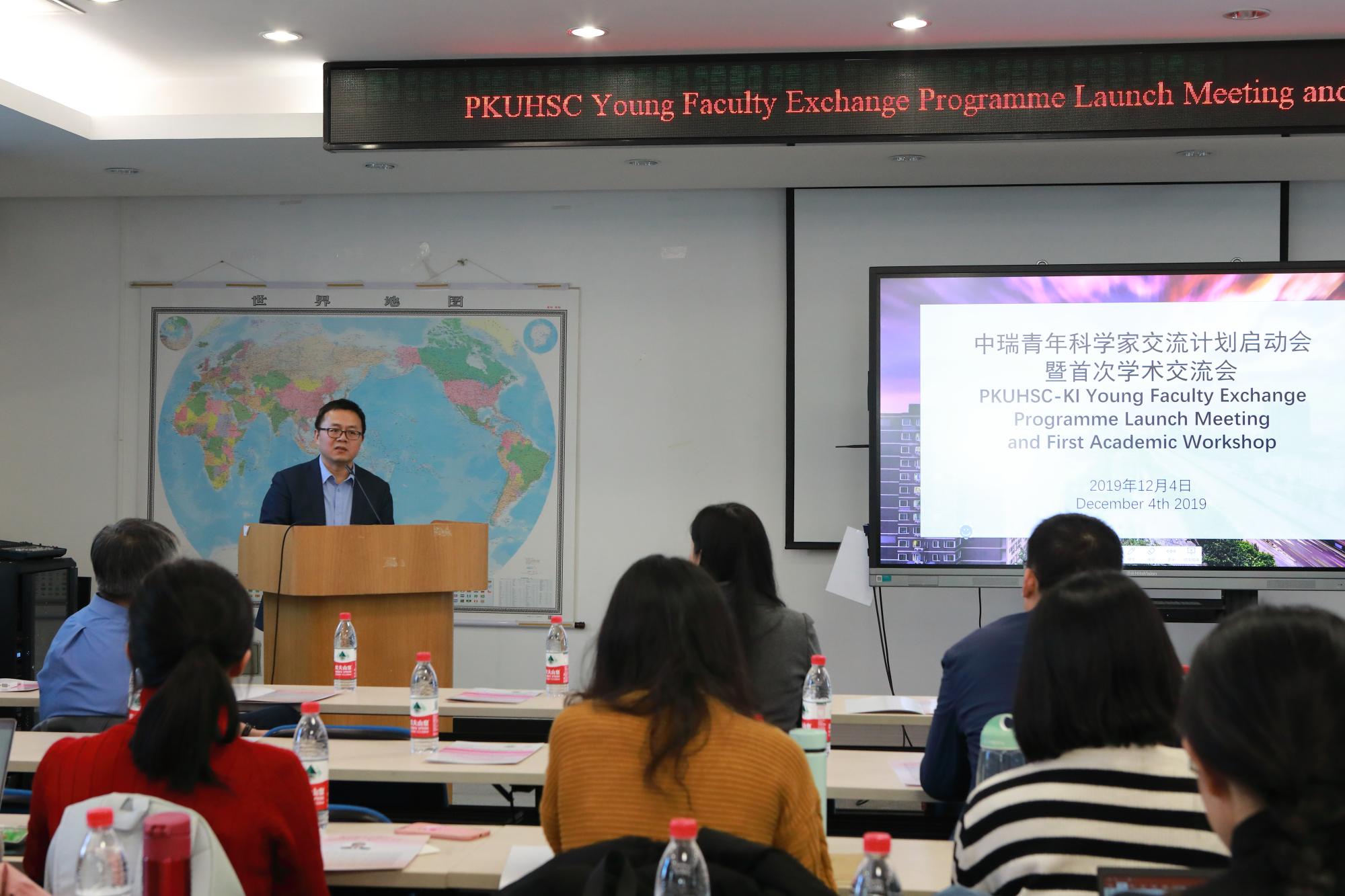 卡罗林斯卡公司李奈林副教授在讲话中,简要介绍了卡罗林斯卡公司近年来与国内多家医公司校的合作发展历程,尤其是在中国科协的大力支持下,和国内的交流愈加频繁和富有成效。本次和北大医学部联合建立青年科学家交流计划,更是使中瑞青年科学家交流迈上了新的台阶。他代表卡罗林斯卡公司和各位青年学者,向中国科协的支持和北大医学部的配合表示感谢,并对项目进展表示期待。