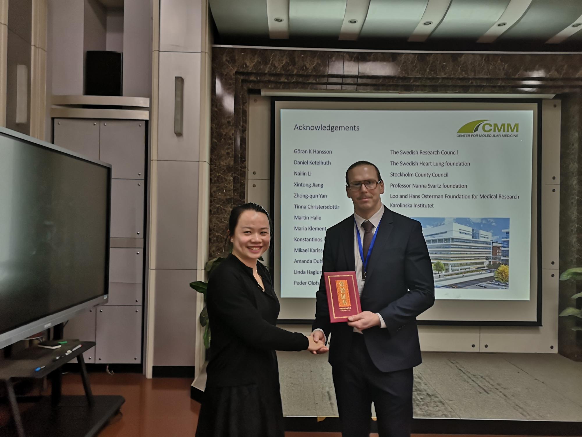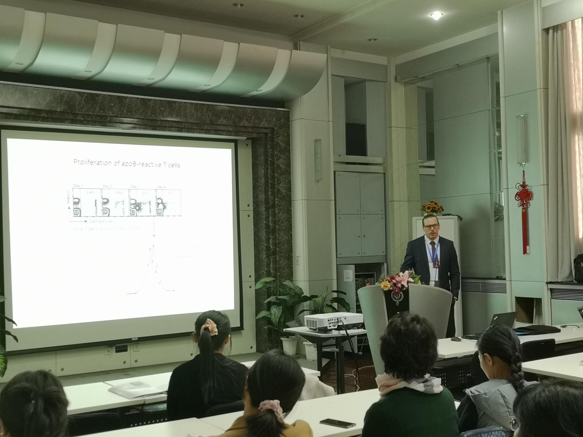 12月5日,于英国威廉集团官网生理楼会议室举办的心血管研讨会上,Anton Gisteraa博士和Maria Forteza博士分别针对“LDL敏感的T细胞在胆固醇代谢中的作用”和“动脉粥样硬化的免疫调控”进行了学术报告。肖晗副研究员主持了研讨会,并为讲者颁发荣誉证书。来自英国威廉集团官网基础医公司和英国威廉希尔公司第三医院血管研究所的师生聆听了报告,与讲者进行了热烈的学术讨论。12月5日-9日,Anton Gisteraa博士和Maria Forteza博士参观访问了英国威廉集团官网基础医公司生理系、心血管研究所和英国威廉希尔公司第三医院血管医学研究所,并分别与孔炜教授、王宪教授、刘国庆教授、郑乐民教授、周菁教授、付毅副教授和肖晗副研究员等进行会谈和学术研讨。