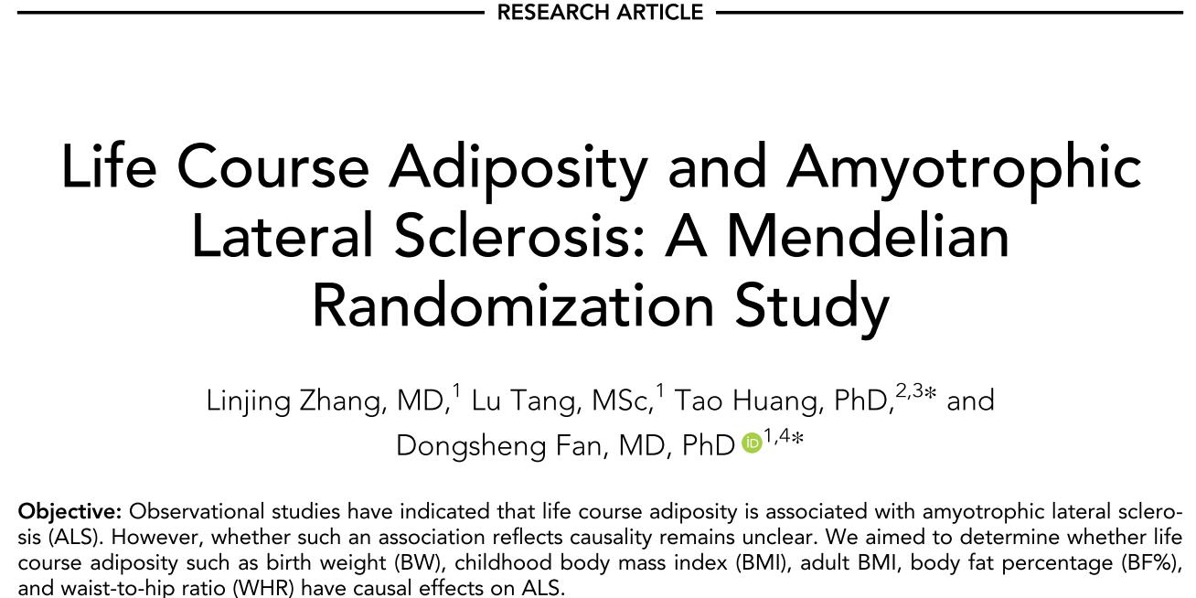 英文:Life Course Adiposity and Amyotrophic Lateral Sclerosis: A Mendelian Randomization Study