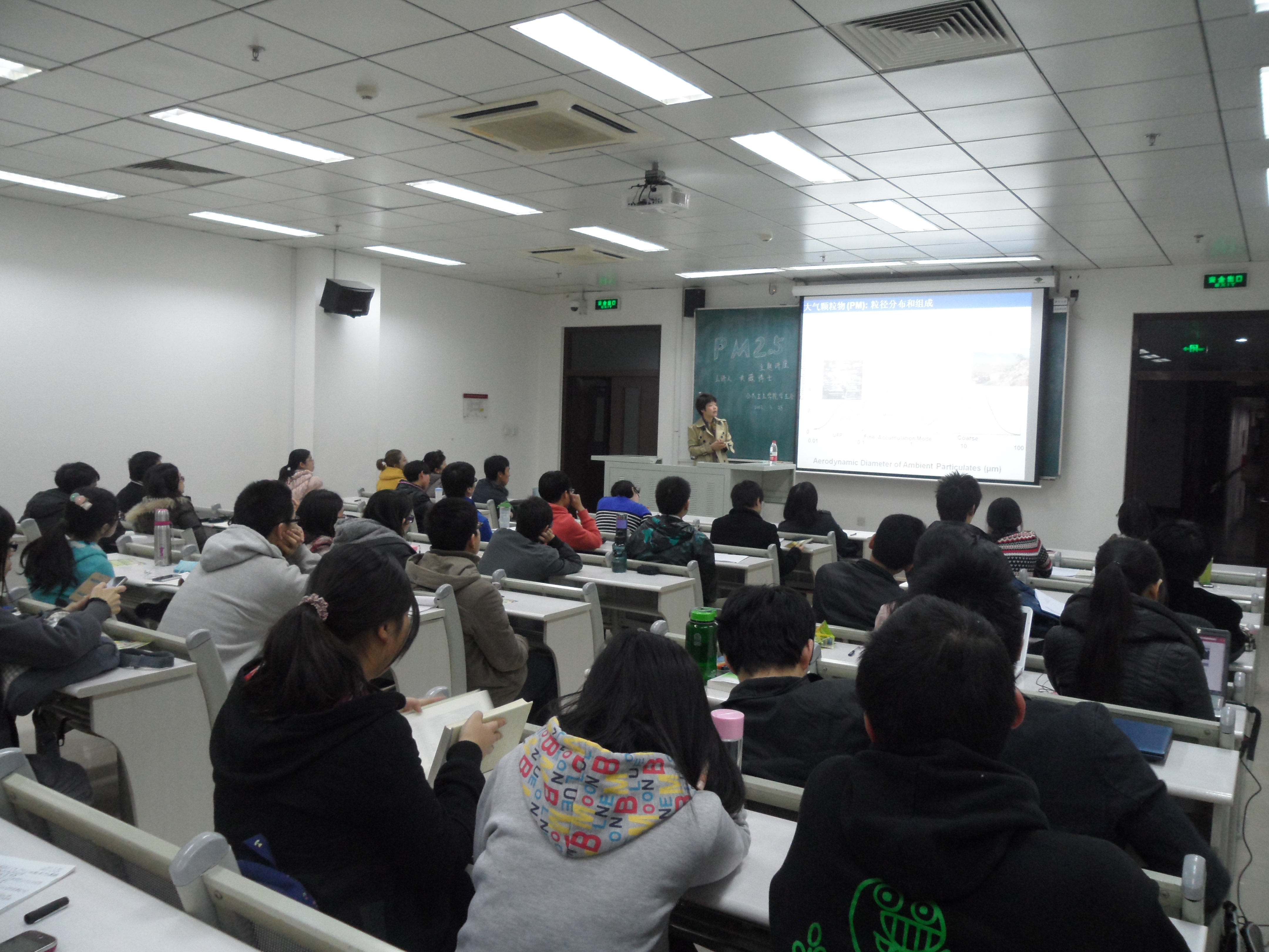 讲座中,黄老师深入浅出地介绍了PM2.5的相关知识,包括PM2.5的定义、来源、成分、监测和危害等。并向我们介绍了国内外大气颗粒物研究的前沿动态,例如美国的“哈佛六城市队列”、“美国癌症学会队列”、“欧洲联合队列”,以及公司在大气颗粒物领域的最新研究成果。通过国内外对比,黄老师指出了我国大气颗粒物研究亟待改进的方面。她在讲解中引入了许多图表及研究数据,向我们展示了PM2.5的具体监测过程、研究手段及危害分析等,表达严谨而又让人易于理解,让同学们学到了不少专业知识和科学研究的方法。