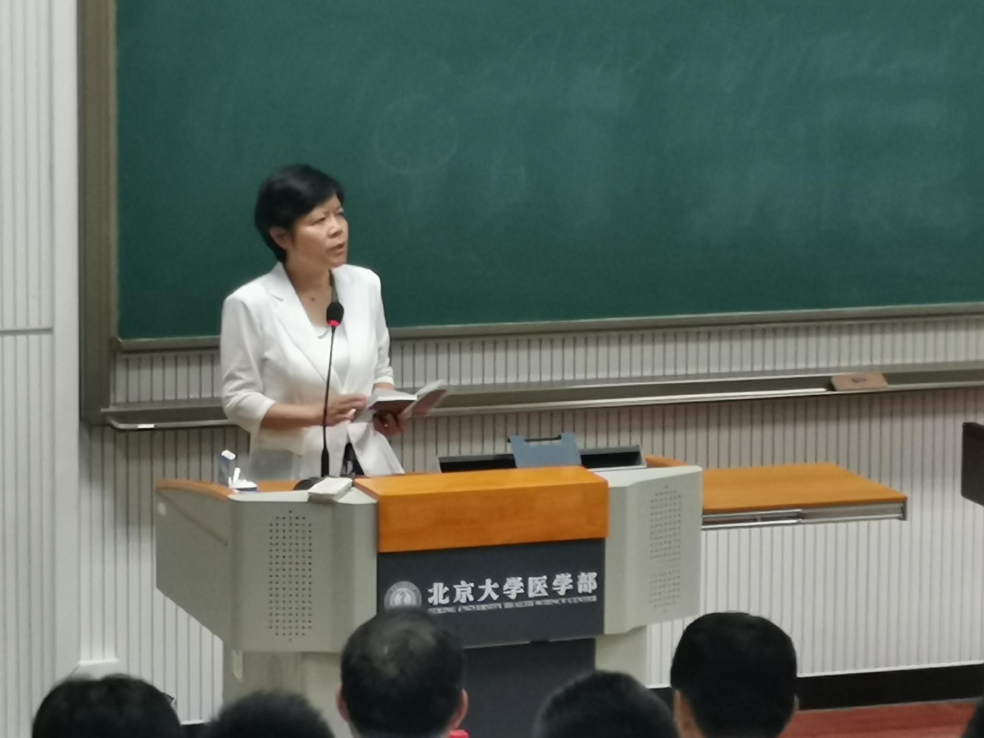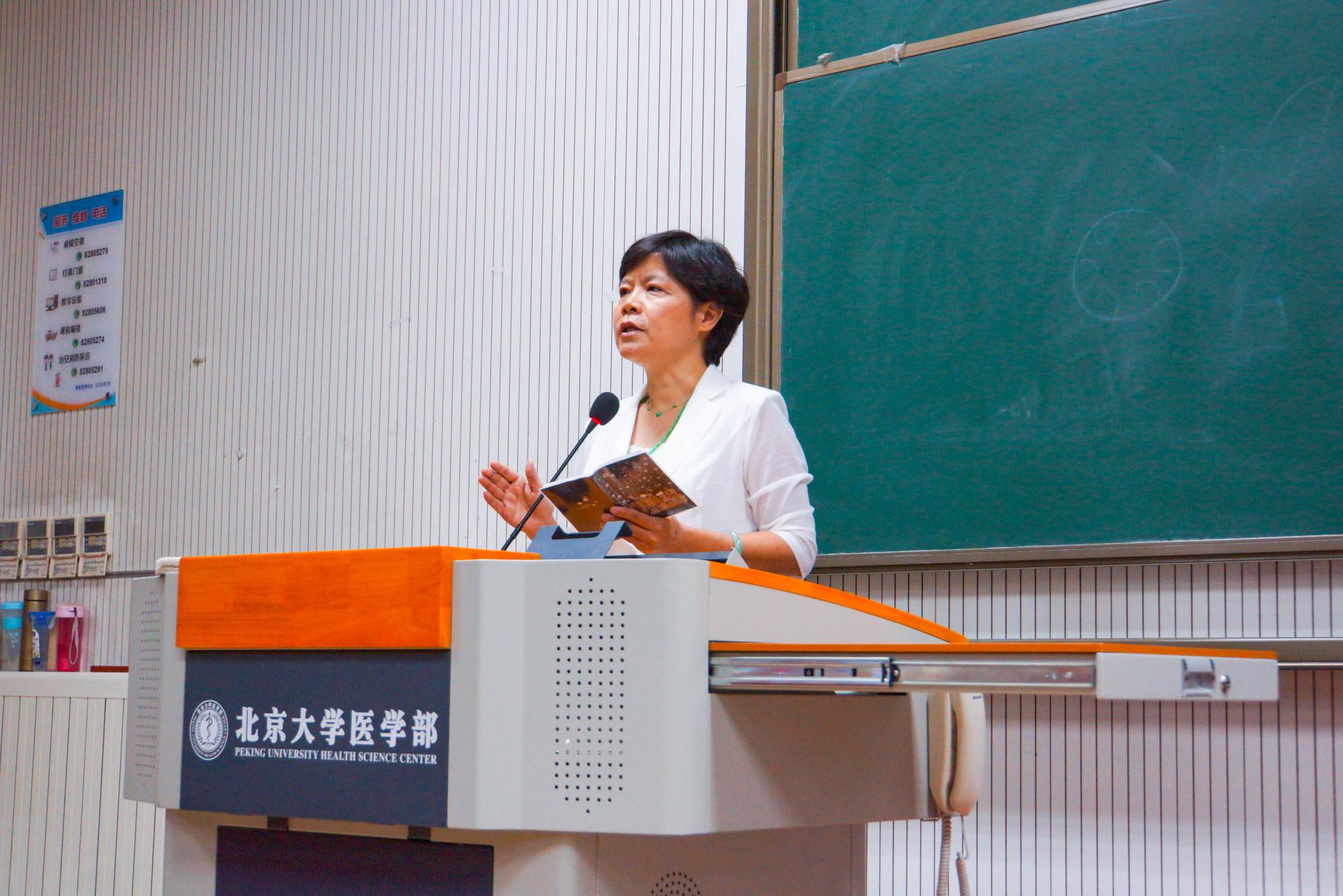 黄薇教授代表公司教师致辞。看到同学们朝气而年轻的面容,黄薇教授以“青春,自立,激情,梦想”进行了概括,更用“人文医学,大美预防,美美与共,北大医学”述说自己心中的预防医学。鼓励同学们要相信自己的理想兴趣和自己所具备的能力,一旦发现了自己的热爱就不懈的追求,一定能看到北大医学最美的境界。