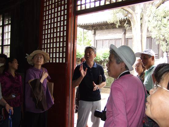 一进入大觉寺,院办主任任涛老师就客串起导游为大家讲解大觉寺的历史。老干部们认真聆听,不时用手中的相机拍下各种景观,并乐此不疲。在导游的带领下,大家了解了体现辽国时期契丹人朝日的寺院建筑格局,参观了寺内千年银杏、三百年玉兰,古娑罗树,松柏等。
