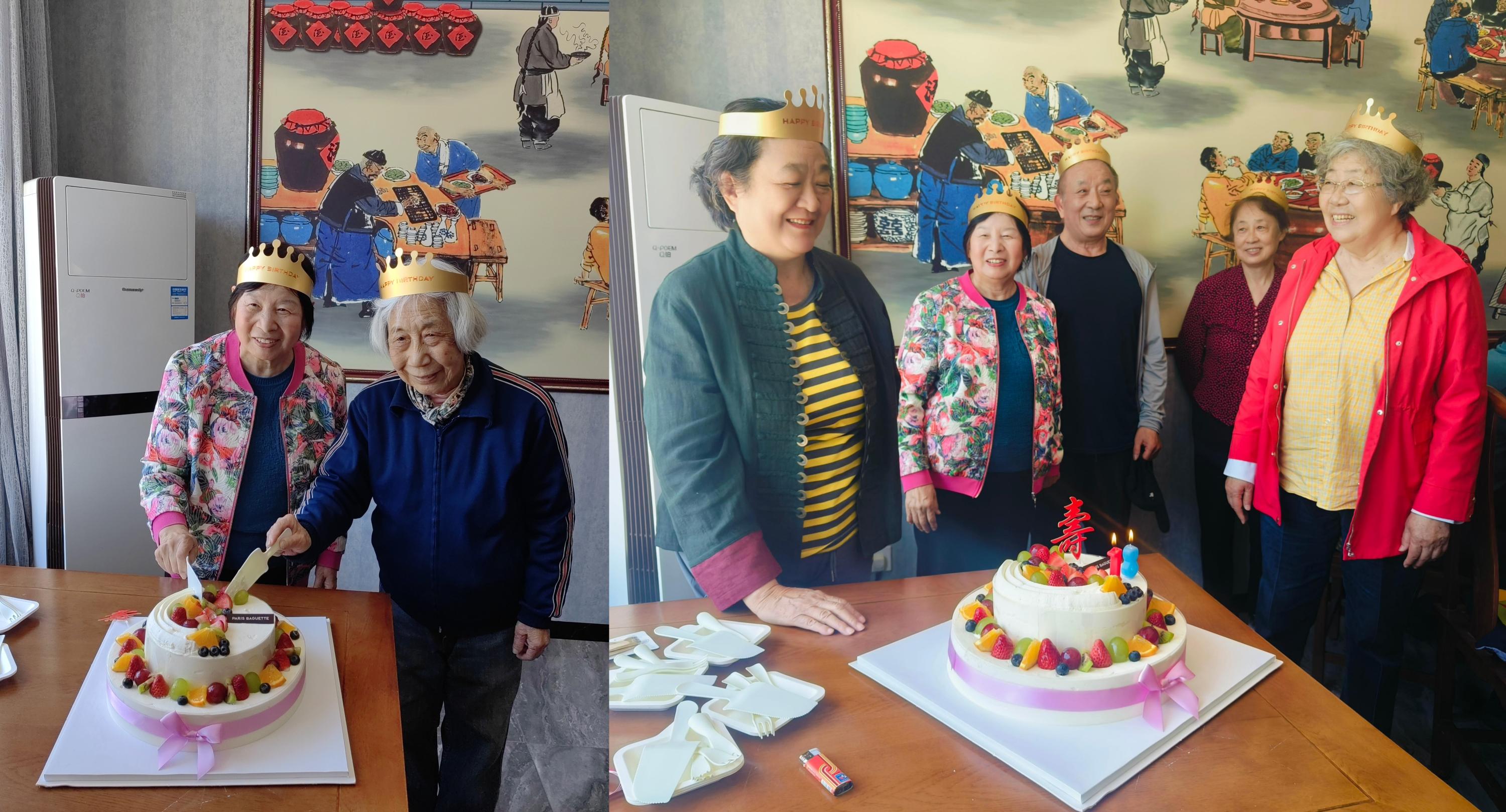 中午12时,老师们在龙庆峡附近餐厅用餐,期间,一场精心策划的“集体生日会”悄然拉开帷幕——桌上摆放着一个大大的缀满水果的蛋糕,健康长“寿”的“寿”字格外醒目,这是公司为4、5、6月份过生日的6位离退休老师准备的惊喜,其中89岁的退休老师苑沛青和今年刚满80岁的洪世欣两位教师,成为当天最受瞩目的寿星。“祝您生日快乐,祝您生日快乐……”在全场合唱的生日歌中,苏鸿副书记为老师们戴上寿星帽,亲手切下第一块蛋糕。“没想到公司还记得我们的生日,以后每年我都要参加集体活动!”关予北老师格外兴奋地说道。