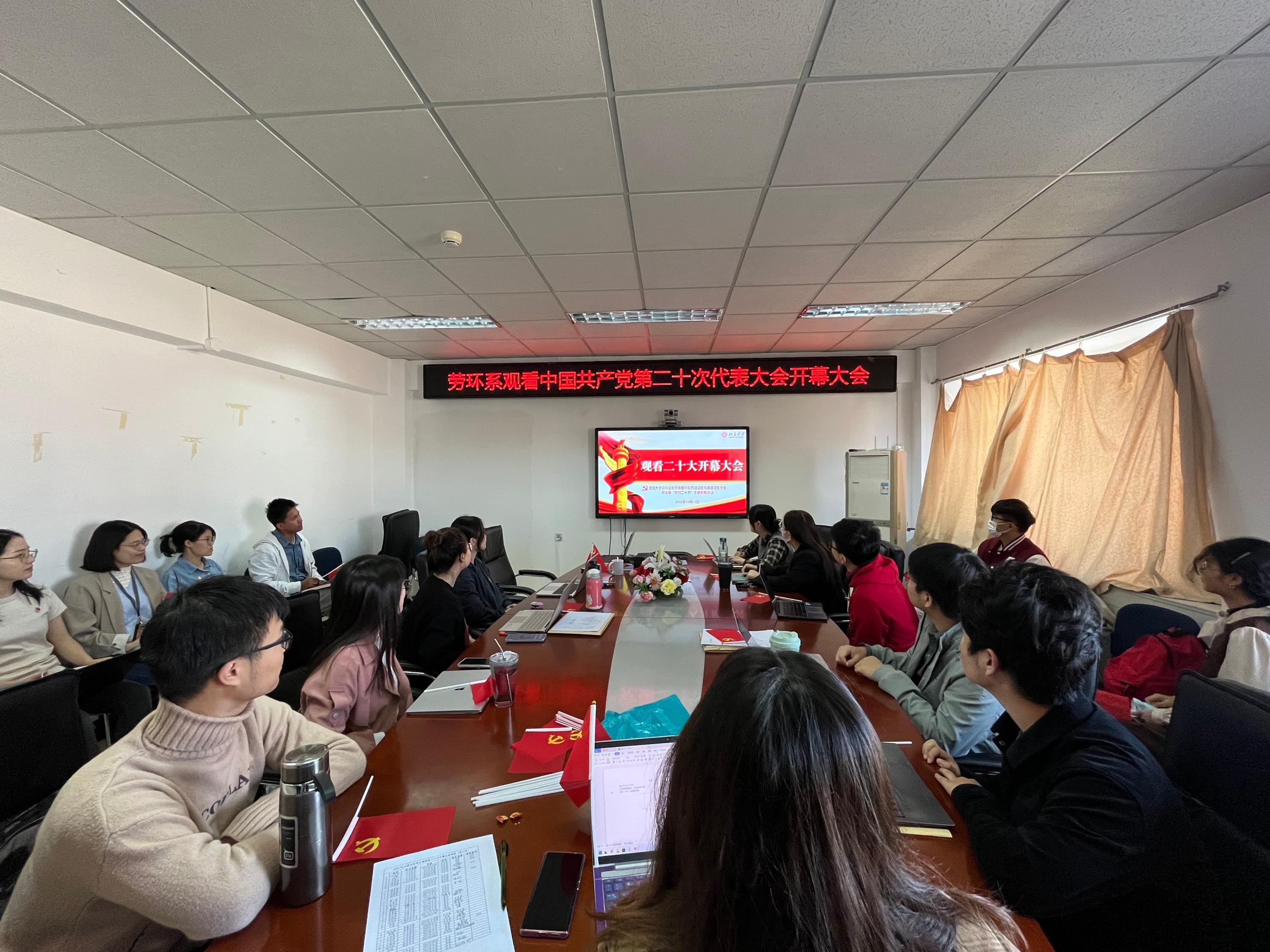 教工党支部采取线上线下相结合的方式收听收看党的二十大开幕会
