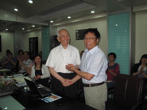 在全场热烈的掌声中孟经理向王振刚教授赠送了对于教师具有重要意义的纪念品——电子教鞭;活动结束了,教师们尤感意犹未尽,关于哲学、关于教师、关于综合素质的讨论仍在继续……