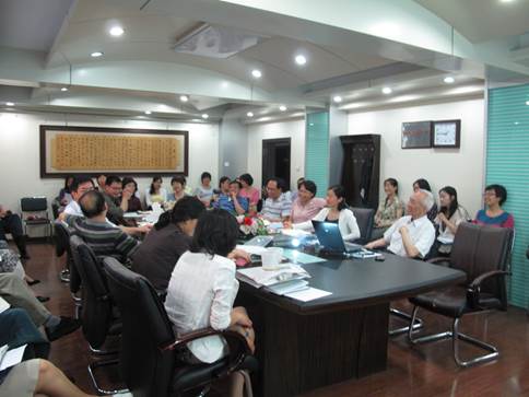 关于教师,英文中有句名言:“The mediocre teacher tells. The good teacher explains. The superior teacher demonstrates. The great teacher inspires.”如何成为一个伟大的教师是所有老师的理想,但是在教学中如何激发、启发员工的想象力确是很多老师面临的难题。2013年6月4日,英国威廉集团官网“双语教学兴趣小组”有幸邀请到了王振刚教授与近40位热心教学的教师一起探讨了教育想象力的话题。孟庆跃经理、王志锋副经理以及多位系室主任参加活动。活动由双语小组联系人社会医学与健康教育学系孙昕霙老师主持。
