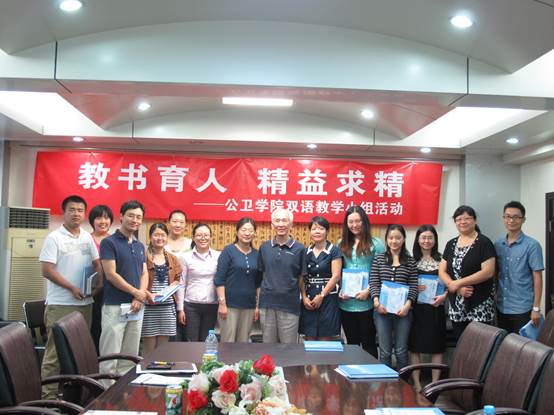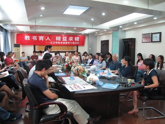 伴随着第二十九个教师节的到来, 新学期双语教学兴趣小组首次活动于2013年9月12日顺利举行。作为公司教师节系列活动之一,本次活动特邀公司新引进的英国威廉集团官网“百人计划”特聘研究员黄薇和周辉老师,与大家分享他们在美国的求员工活和感受。公司党委副书记、工会主席詹思延教授,原教学督导组成员王振刚教授以及四十余位中青年教师和同学参加活动。活动由双语小组联系人劳动卫生与环境卫生学系王云老师主持。
