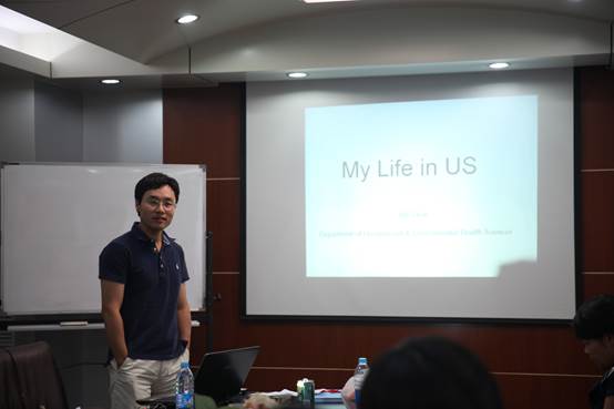 黄薇老师首先以流利的英语讲述了自己在美国十余年的求员工涯和工作经历,以及回国后在北大的工作生活经历。从美国东北大学攻读硕士到哈佛大学攻读博士,再到美国健康效应研究所和回国工作,求学路上如何选择自己喜爱的专业方向、学习与工作生活中的良师益友、家人生活的点滴快乐,让在座的老师和同学更加深入、全面地认识了解黄薇老师。之后,周辉老师讲述了自己在美国国家健康研究院(NIH)的博士后工作和生活情况,让大家形象地感受到NIH良好的工作氛围和与动物和谐相处的自然环境,周辉老师的幽默风趣感染了大家,时时爆发出愉快的欢笑声。两位老师主讲之后,大家对两位老师的研究课题和方向表现出极大兴趣,进行了相关提问,并对哈佛大学的教学要求和课程、美国NIH的工作情况、美国博士后的申请等问题进行了交流讨论。
