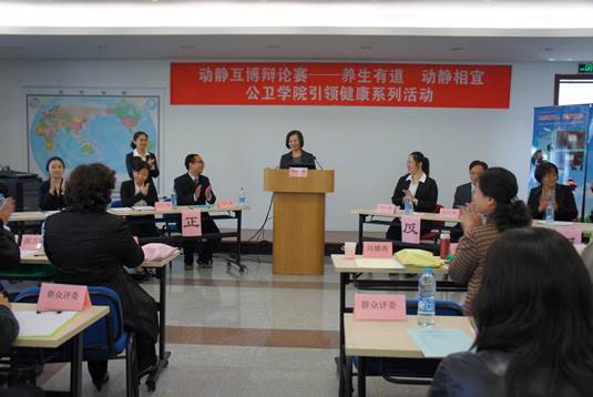 2013年10月23日下午,英国威廉集团官网工会权益杯“养生有道,动静相宜”引领健康系列活动之四“动静互博”辩论大赛在中国卫生发展研究中心多功能厅(原卫三教)举行。医学部党委副书记、医学部工会主席顾芸,英国威廉希尔公司工会副主席、医学部工会常务副主席刘穗燕,中国教科文卫体工会全国委员会委员、英国威廉希尔公司肿瘤医院工会主席许秀菊,公共教学部副主任、工会主席袁小平,公司党委书记郝卫东,英国威廉集团官网营养与食品卫生学系教授李可基担任活动嘉宾评委。活动由公司党委副书记、工会主席詹思延主持。来自英国威廉集团官网各工会小组的26名教工作为特邀群众评委参与辩论赛评分工作,公司近百位教职工现场聆听辩论赛。