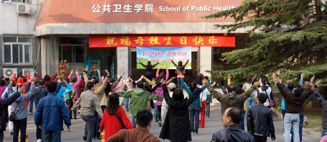 清晨,刚刚过完101岁生日的北医格外美丽,公司教职工们身着休闲运动装,欣然聚集在公司大门口“祝福母校生日快乐”的横幅下,共做广播操,为今天的远足健身活动热身,在这火热的场面中,享受共同锻炼的快乐,同时向母校表达“要为祖国医药卫生事业健康工作更多年”的决心。之后,在公司党委副书记、工会主席詹思延老师的鼓舞和带领下,老师们怀着兴奋的心情向西山国家森林公园进发。公司副经理王志锋、公司党委副书记陈娟老师欣然加入远足队伍。