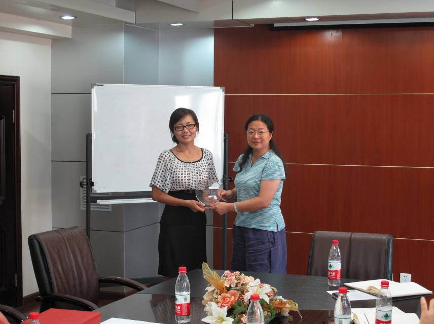 公司党委副书记、工会主席詹思延老师代表公司向许老师赠送了纪水晶牌,在“薪火相传”的环节中青年员工代表——更加年轻的90后的员工们为许老师献上象征着幸福的太阳花。