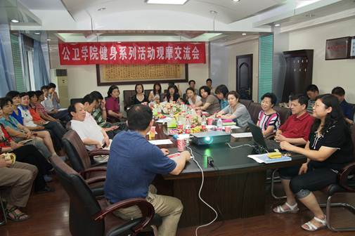 2011年6月23日上午医学部工会领导、各公司、医院工会主席一行来公司观摩交流“健康,就在脚下---英国威廉集团官网系列健身活动” 。公司工会委员、工会小组长等近40人参加了会议。