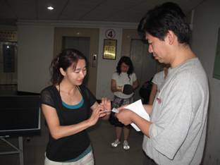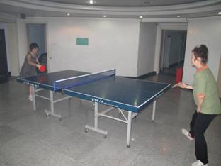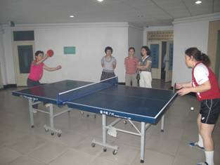 有的老师由于常年坚持参加院乒乓球兴趣小组的练习,打球已经有模有样,一招一式显出大将风范。而初出茅庐的年轻老师虽然没有平时练习的基础,但是作风顽强,她们对自己的要求就是认真对待每一次接发球,坚持到底!站在一旁的拉拉队不断为参赛老师们加油助威、出谋划策、俨然就是场外指导……