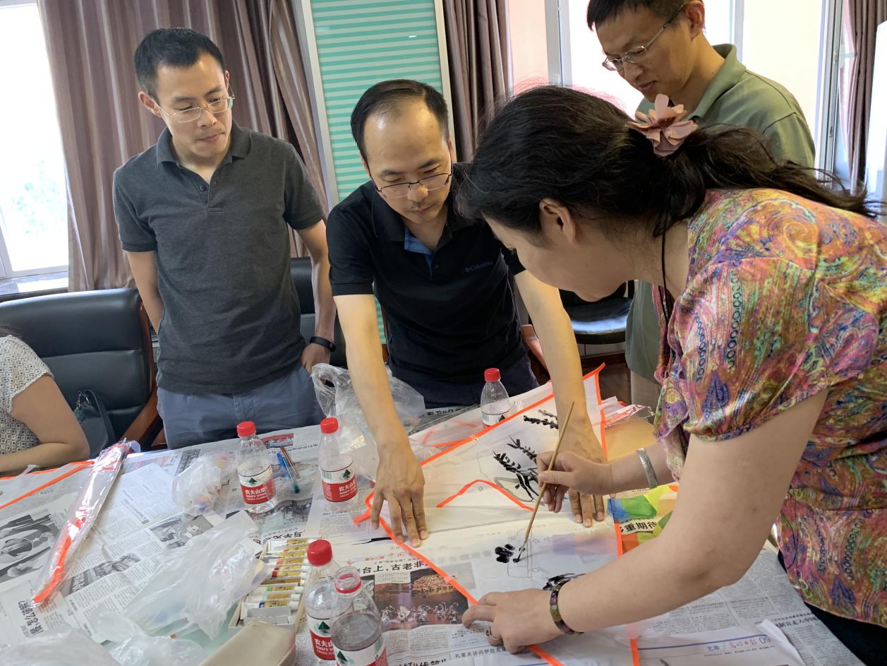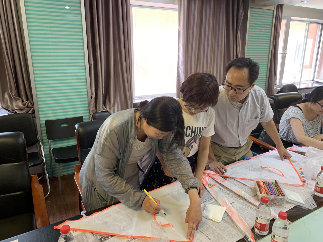 青年教师在幼儿园老师的指导下,画面的雏形逐渐显现