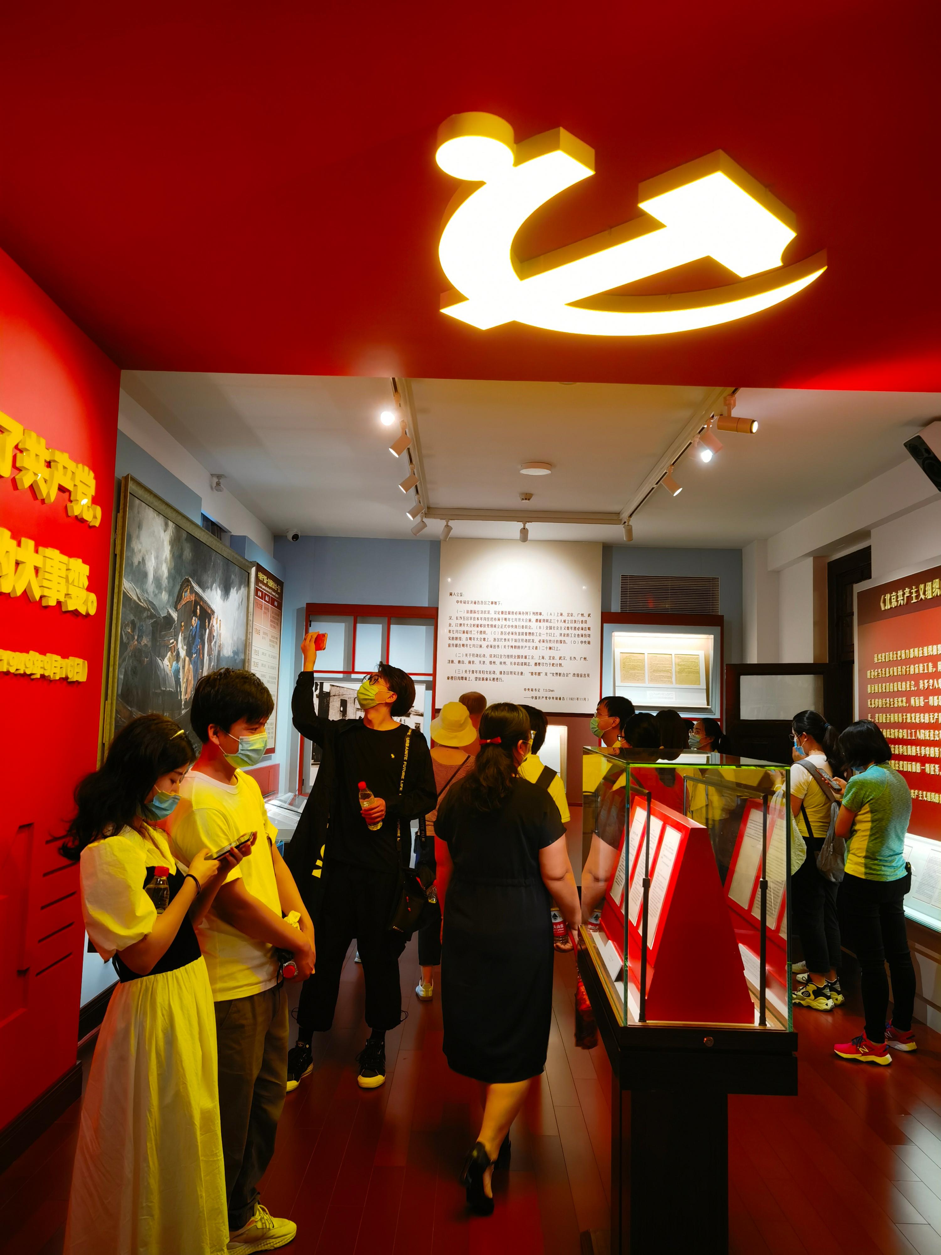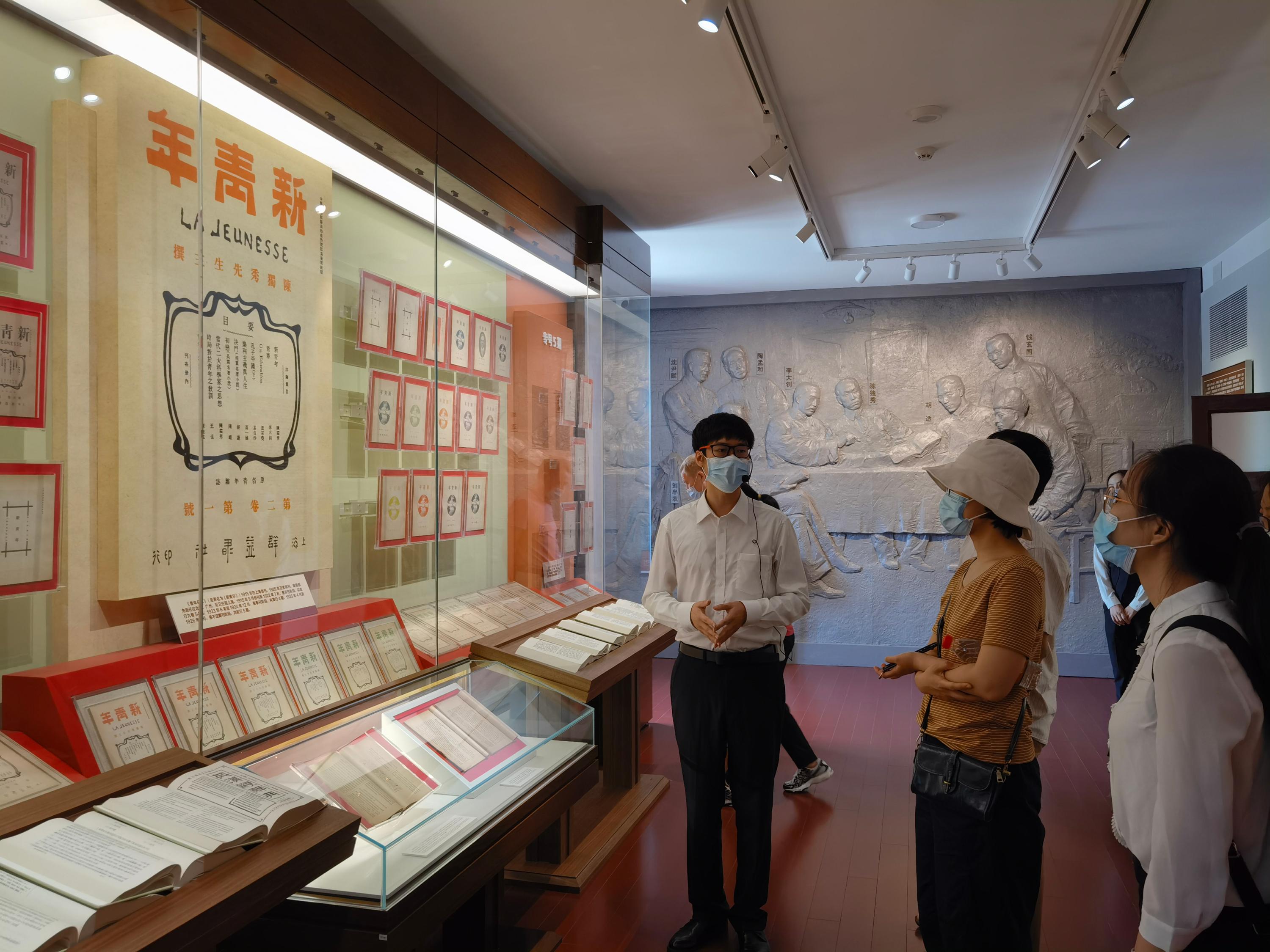 各位党员同志跟随讲解员按照展览内容六个部分依次进入展室参观,从回顾“经历近代各种力量救亡图存探索的失败,工人阶级开始登上历史舞台”到展望“不忘初心,牢记使命”,沿着共产党发展的时间线重新学习了那段崎岖却精彩至极的历史。在这片先贤伟人们曾生活、工作过的土地上,新时代青年党员们用身体和心灵感受着曾经的民主与科学、革命与进步。
