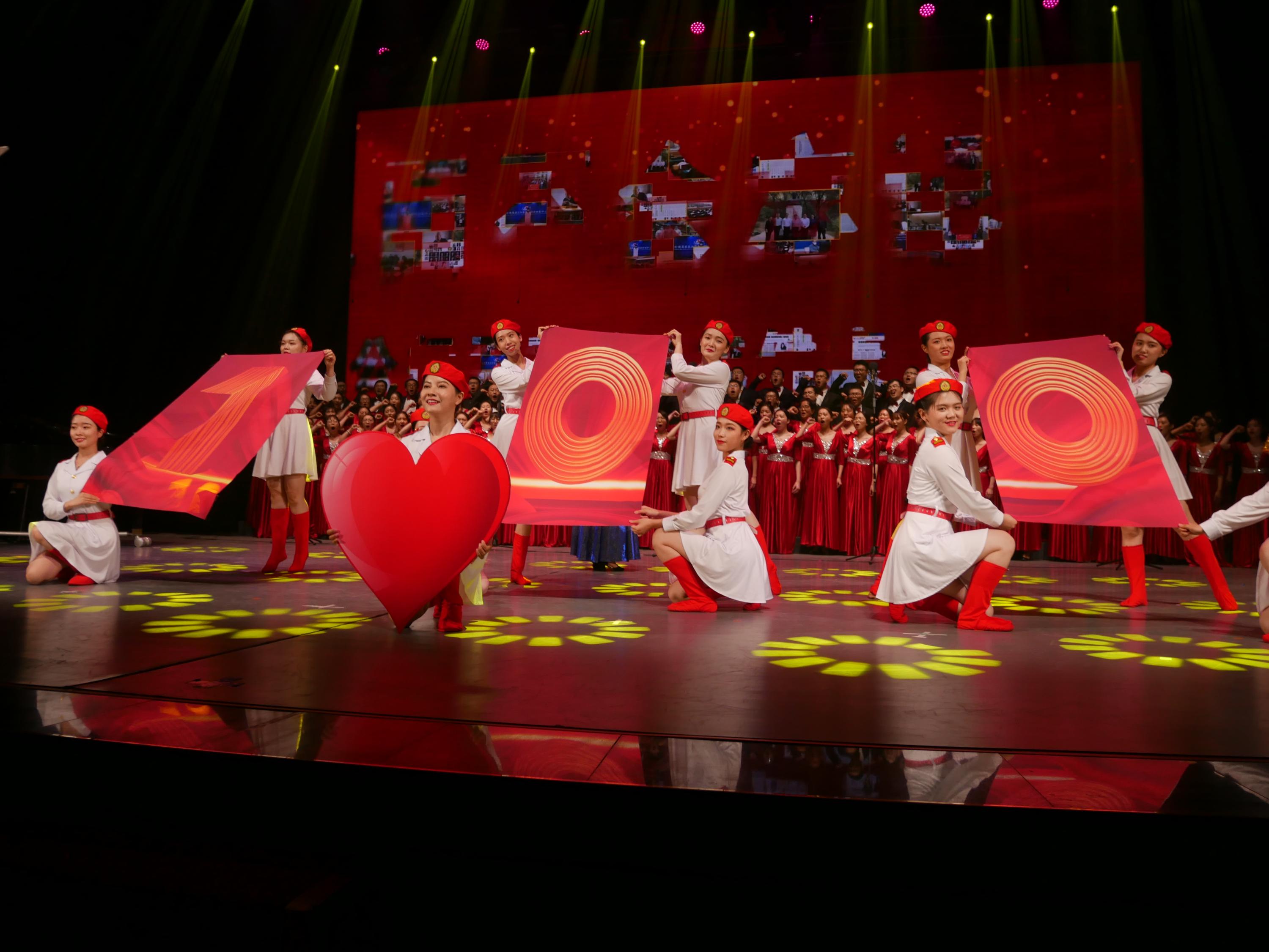 从公司党委统筹的领导小组,到工会主席、工会委员、工会组长参与的教职工协调小组,再到员工党总支领导下的员工协调小组;从聘请的专业声乐指导,到老师同学们集体策划的节目编排,再到公司自主编辑制作的视频短片;从合唱队到舞蹈队、到书法组、到领唱领诵,再到“服、美、道”;从台前到幕后,凝聚的是每一位公卫师生浓浓的家国情,展现的是每一位公卫人淳淳的赤子心!