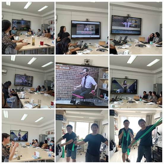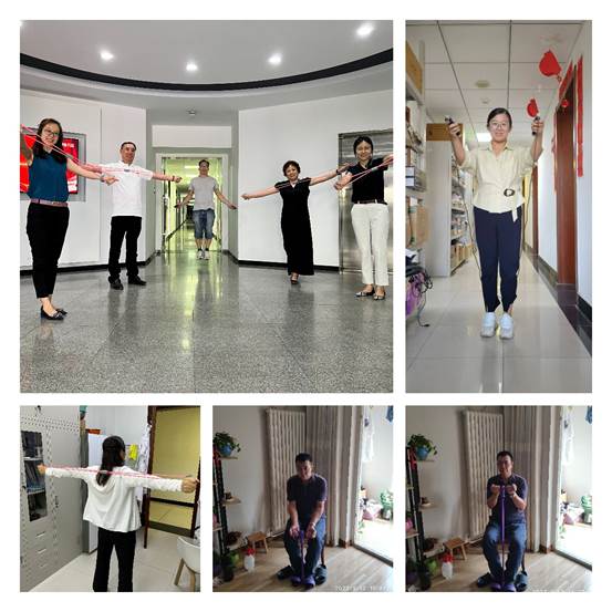 本次活动为老师们准备了简单方便的小型健身器材,在工作之余,可随时使用,简单便捷。老师们跳绳、拉力、仰卧起坐,紧张工作的同时,大家利用五分钟时间,放松身心,集体运动,增加了团队凝聚力,系里的老师们全部参与到运动中来,在运动中享受快乐,强健体魄!